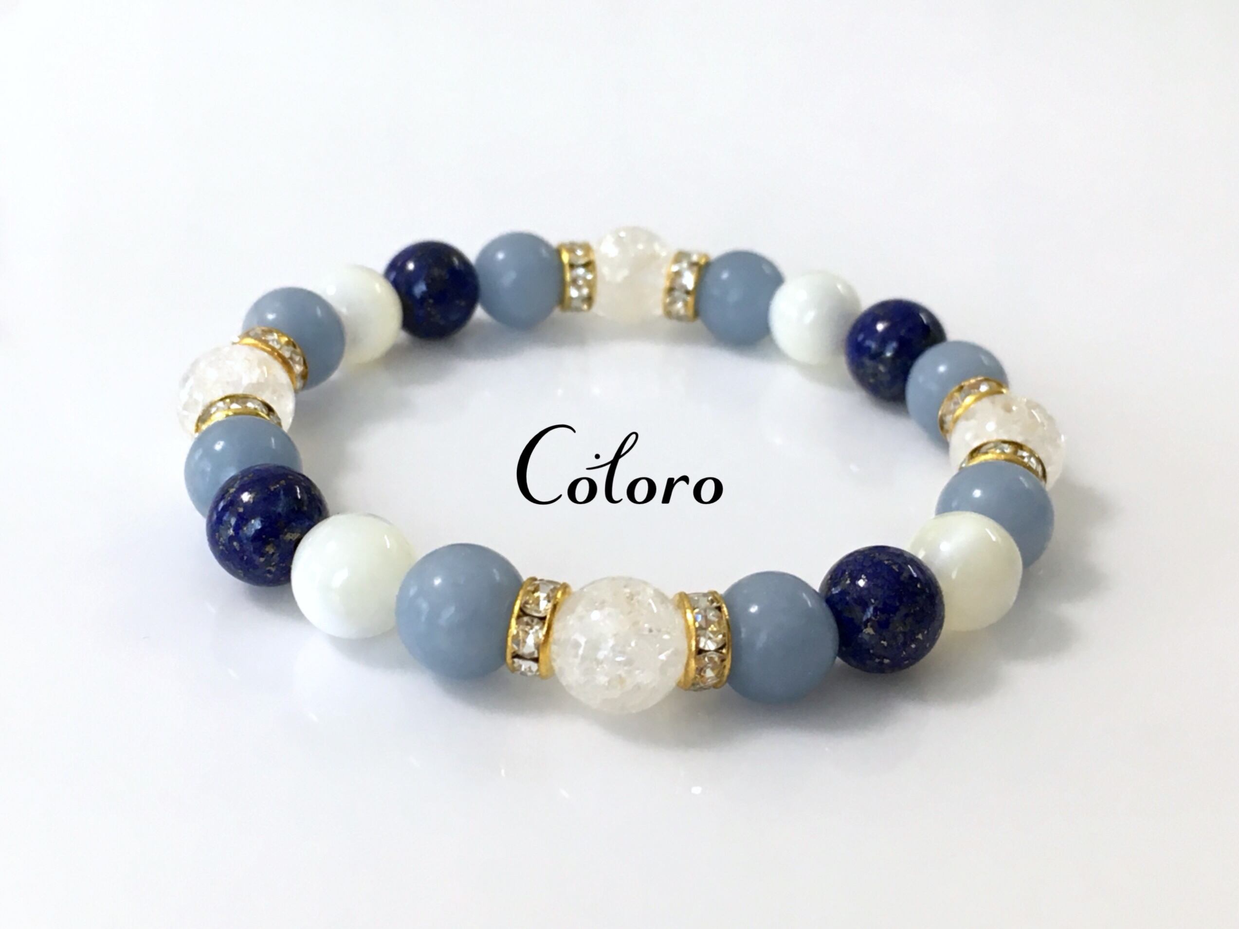 ☆エンジェライト・ラピスラズリ・マザーオブパール・クラッククリスタル☆パワーストーン(天然石)☆ハンドメイドブレスレット☆