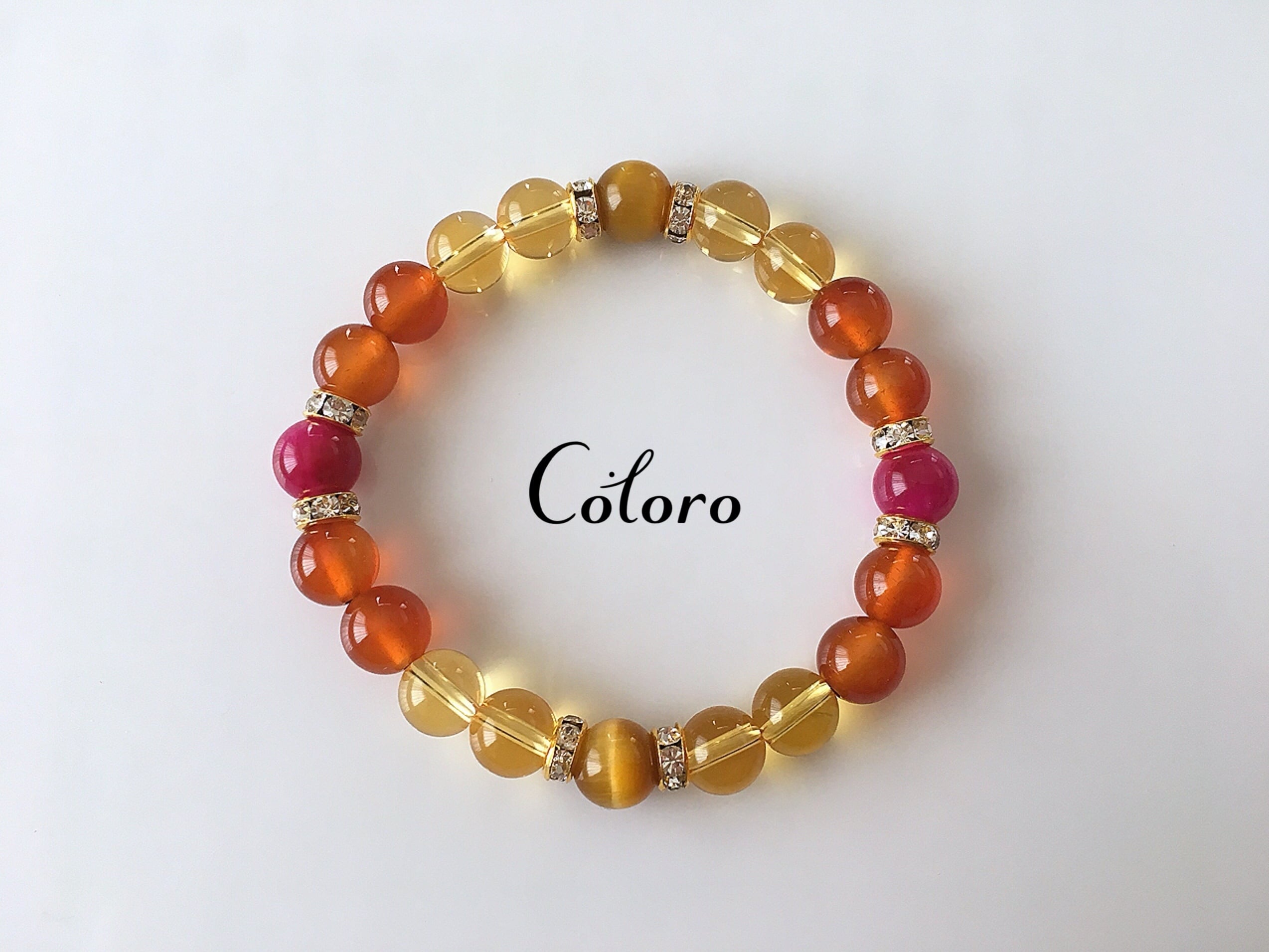 ☆シトリン(熱加工)・ゴールデンタイガーアイ・カーネリアン・ピンクカラータイガーアイ☆パワーストーン(天然石)☆ハンドメイドブレスレット☆
