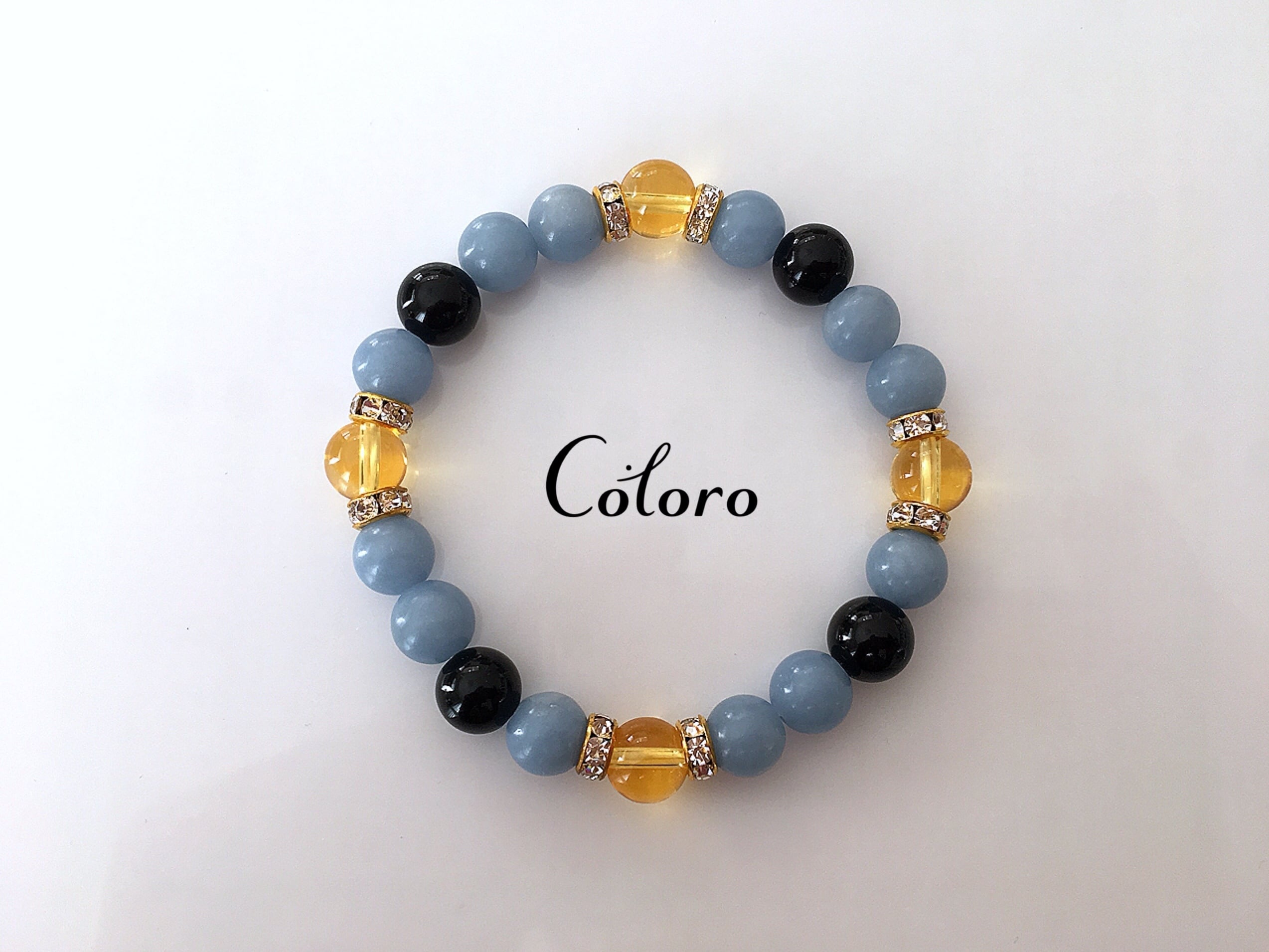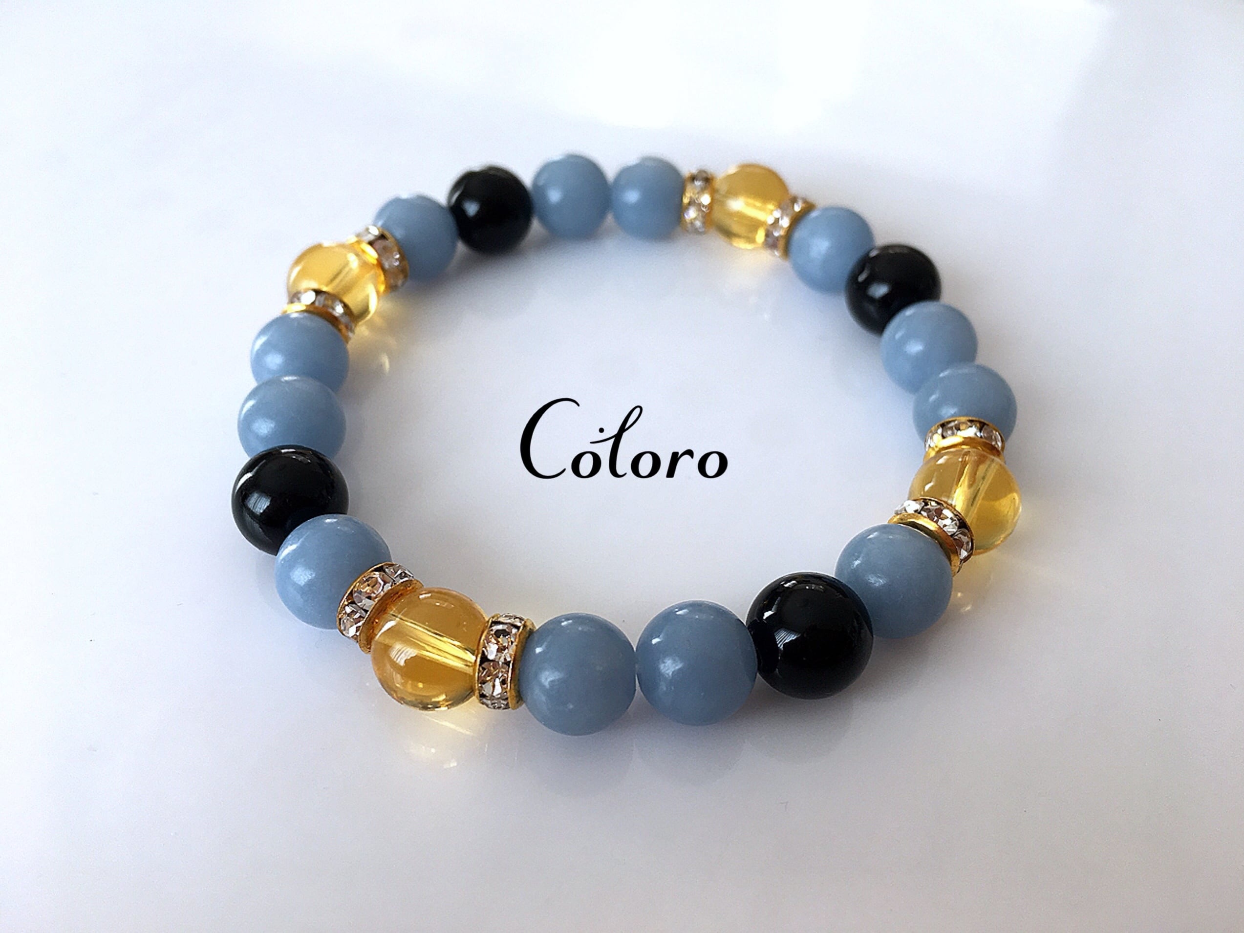 ☆エンジェライト・シトリン(熱加工)・オニキス☆パワーストーン(天然石)☆ハンドメイド☆ブレスレット☆