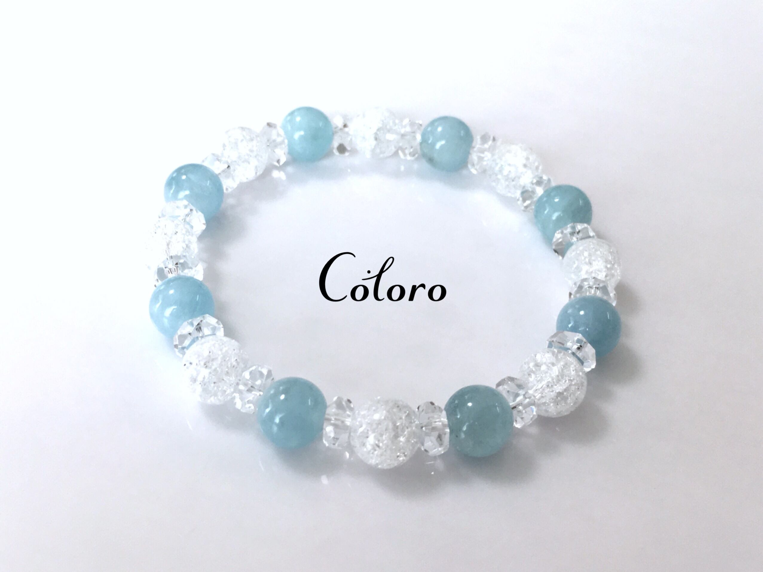 ☆アクアマリン・クラッククリスタル☆パワーストーン(天然石)☆ハンドメイドブレスレット☆
