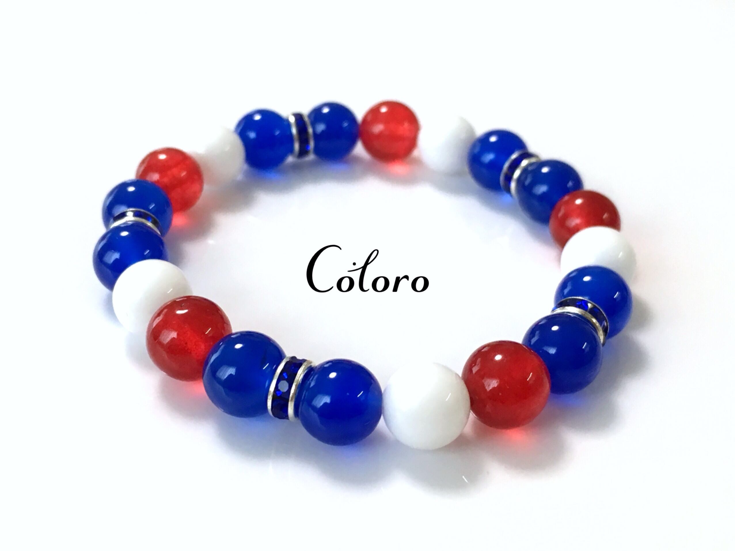 ☆サッカー日本代表☆応援ブレスレット☆ホワイトオニキス・レッドカラージェード・ブルーアゲート(瑪瑙)☆パワーストーン(天然石)☆ハンドメイドブレスレット☆