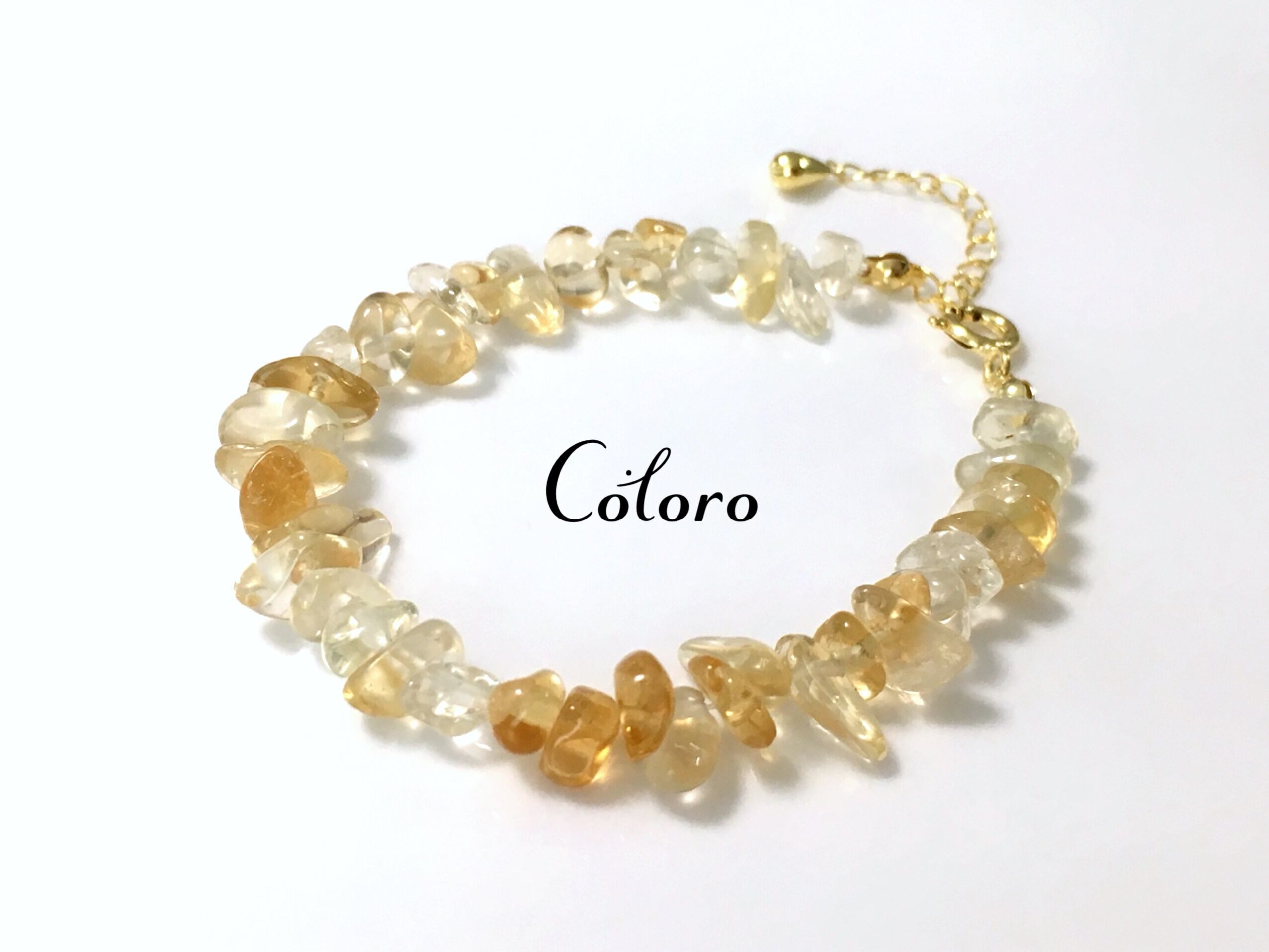 ☆シトリン☆ミニタンブル・さざれ石☆パワーストーン(天然石)☆18KGPアジャスター付☆ハンドメイド☆ブレスレット☆