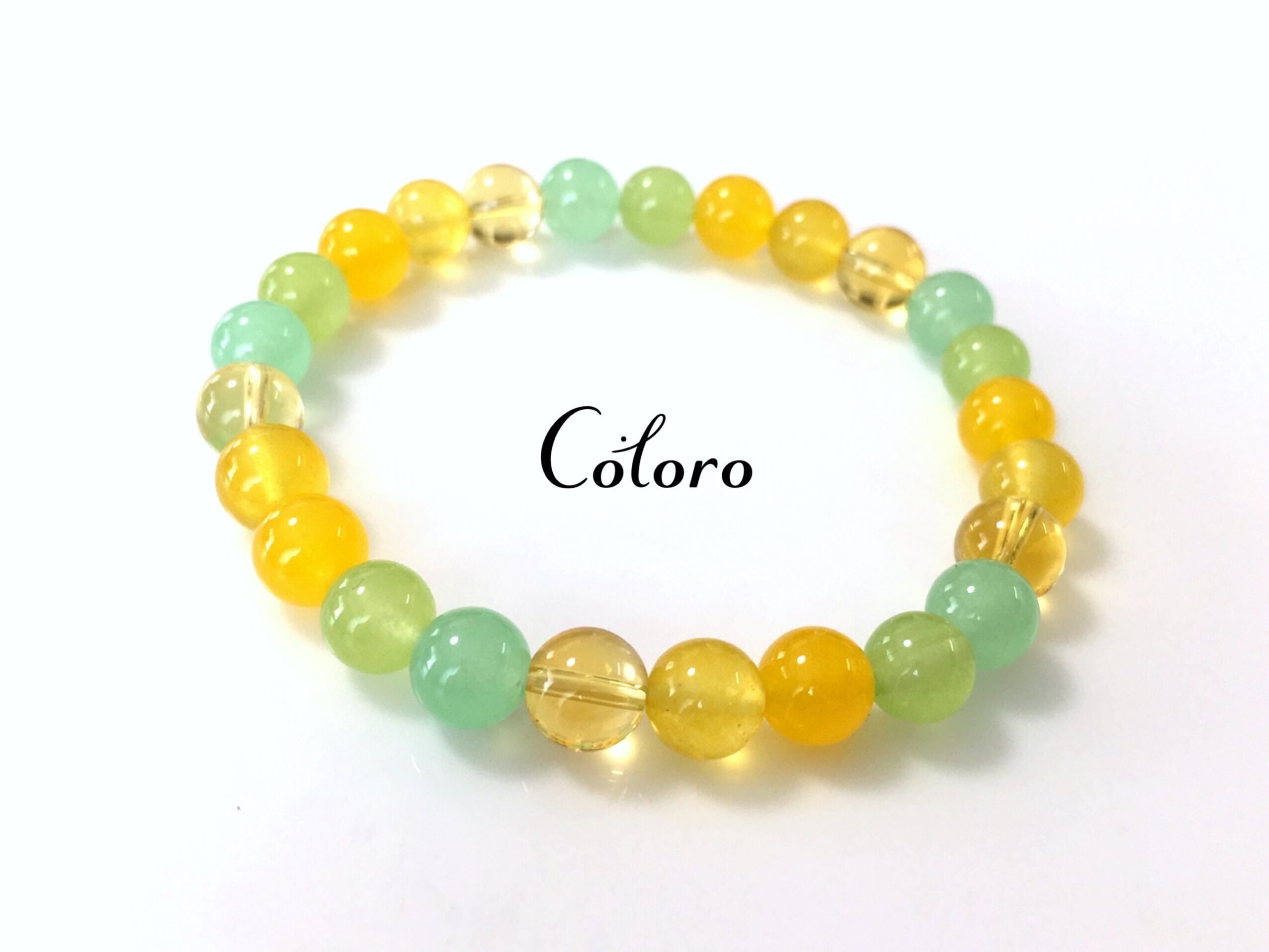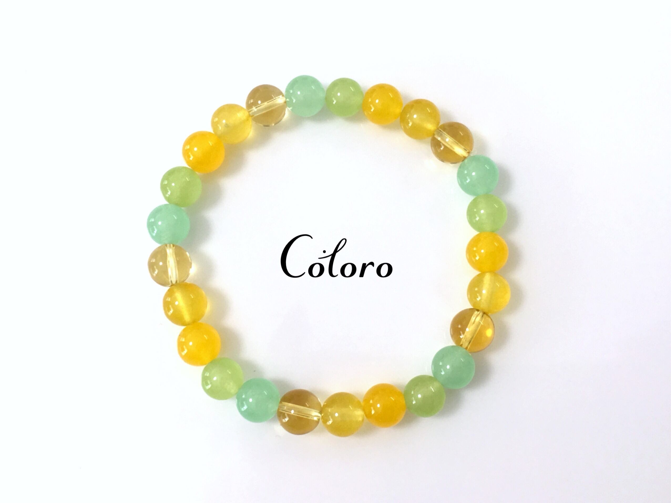 ☆グリーンジェイド・ライムジェイド・イエロージェイド・ハニージェイド・シトリン(熱加工)☆パワーストーン(天然石)☆ハンドメイド☆ブレスレット☆グラデーション☆バナナ☆