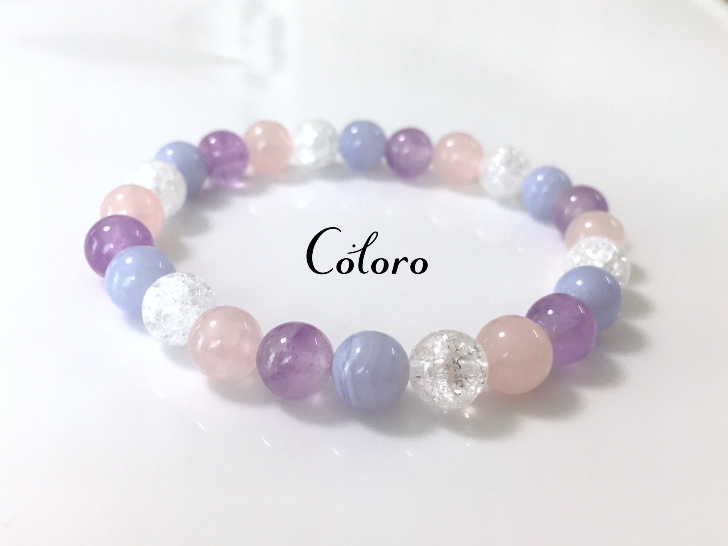 ☆ブルーレースアゲート・ラベンダーアメジスト・ローズクォーツ・クラッククリスタル☆パワーストーン(天然石)☆ハンドメイド☆ブレスレット☆