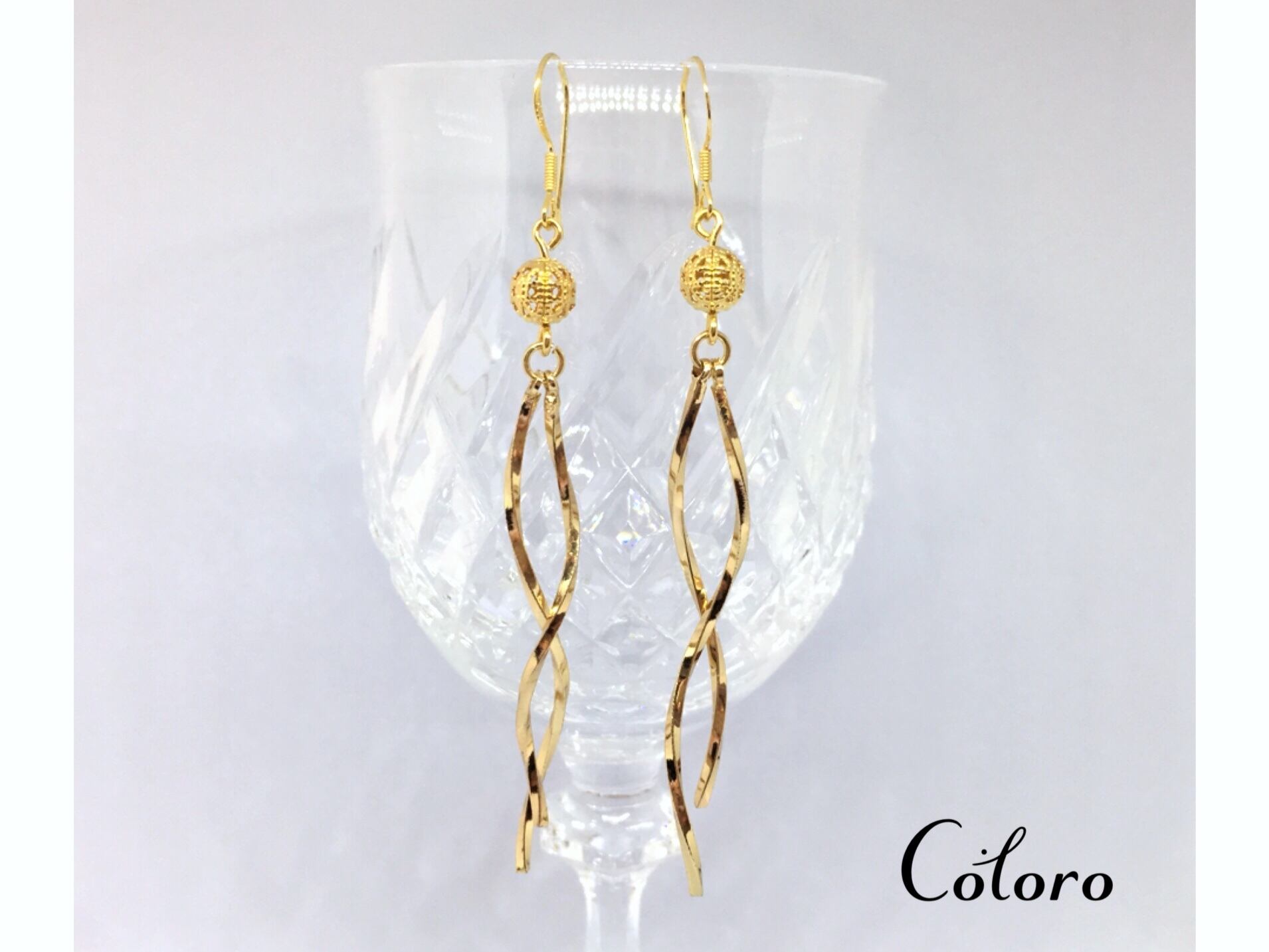 ☆ツイストスティック☆揺れるピアス☆ゴールド☆18KGP☆ハンドメイド☆イヤリング☆