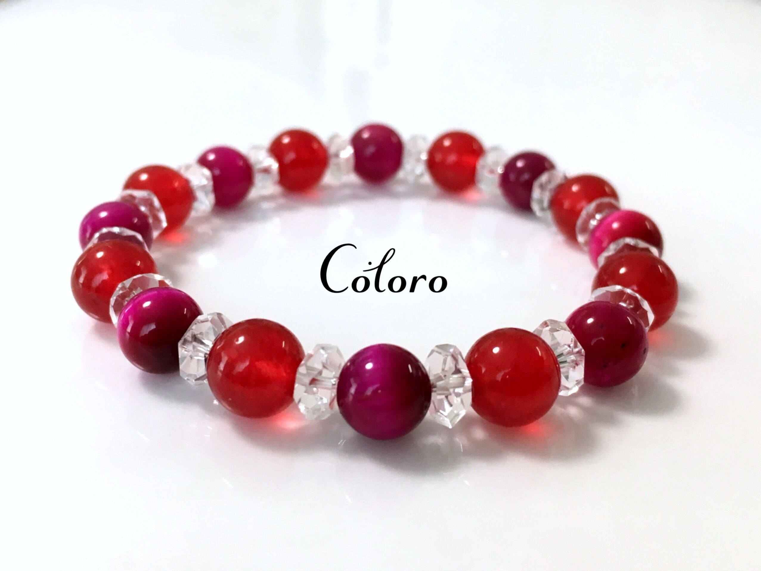 ☆ピンクタイガーアイ・レッドジェード☆パワーストーン(天然石)☆ハンドメイド☆ブレスレット☆数珠☆