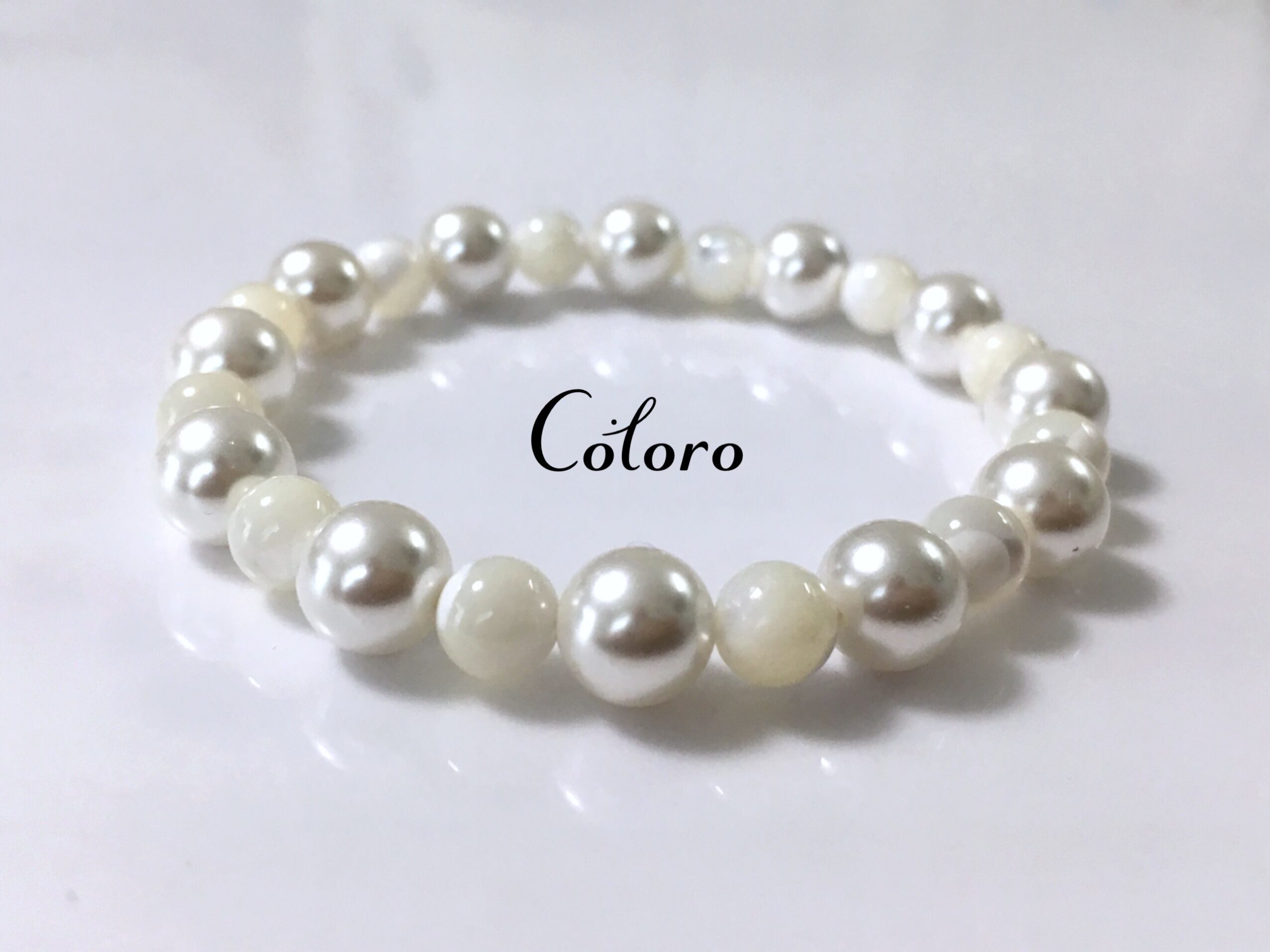 ☆シェルパール(マザーオブパール)・マザーオブパール☆パワーストーン(天然石)☆ハンドメイド☆ブレスレット☆