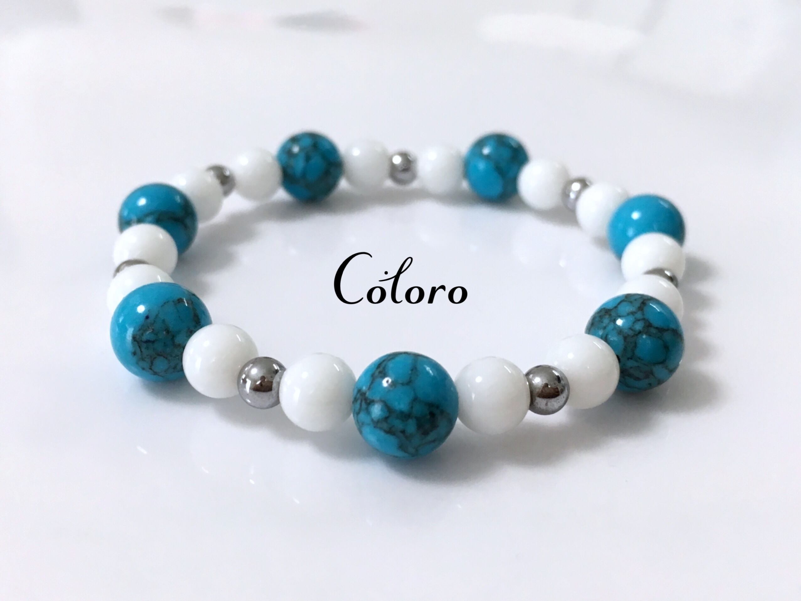 ☆マグネサイトターコイズ・ホワイトオニキス・ヘマタイト☆パワーストーン(天然石)☆ハンドメイド☆ブレスレット☆