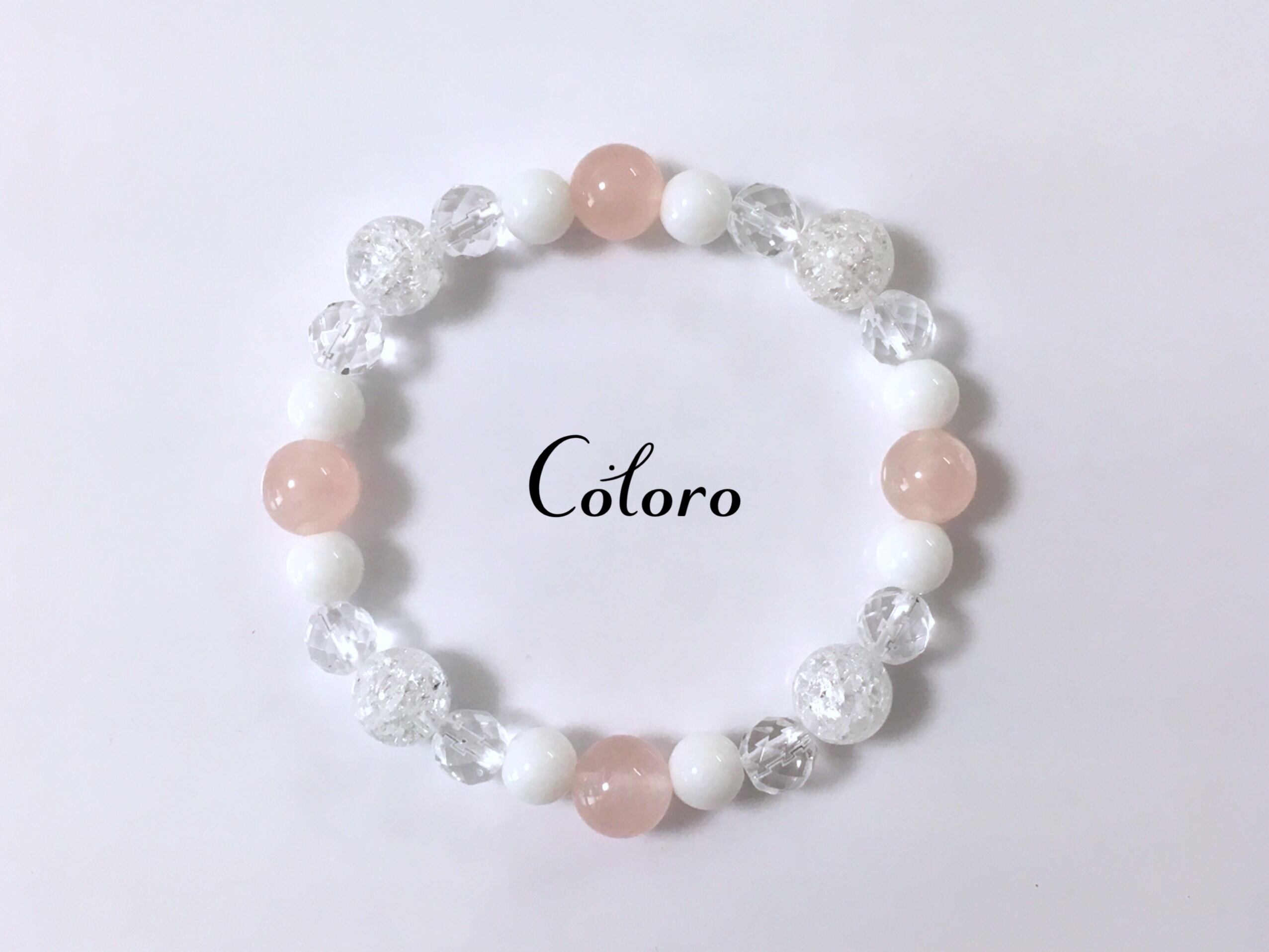 ☆ローズクォーツ・ホワイトオニキス・クラッククリスタル・天然クォーツ(天然水晶)多面カット☆パワーストーン(天然石)☆ハンドメイド☆ブレスレット☆