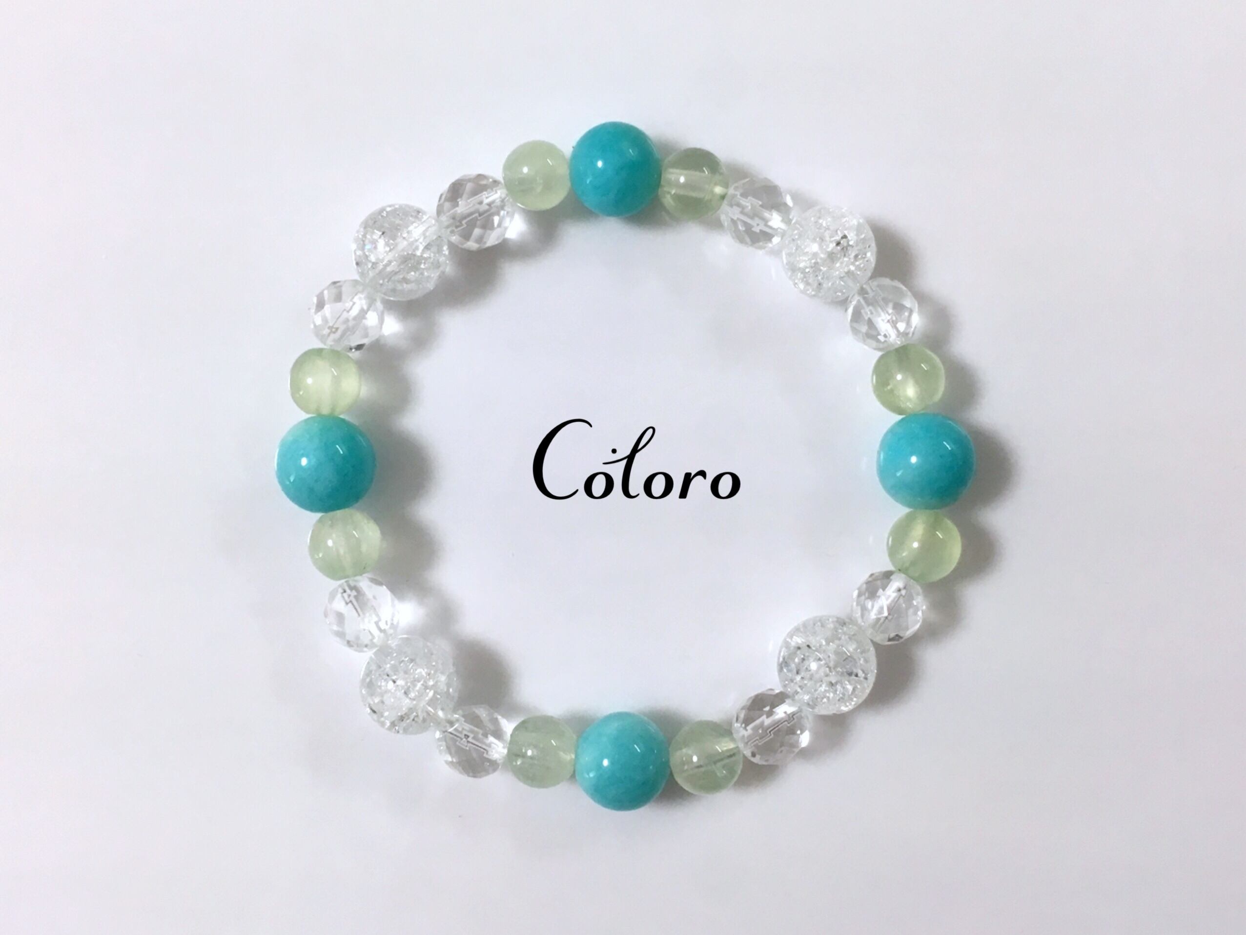 ☆アマゾナイト・プレナイト・天然クリスタル(天然水晶)多面カット加工・クラッククリスタル☆パワーストーン(天然石)☆ハンドメイド☆ブレスレット☆