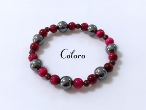 ☆健康石☆高純度テラヘルツ鉱石・ピンクタイガーアイ・ガーネット☆パワーストーン(天然石)☆ハンドメイド☆ブレスレット☆