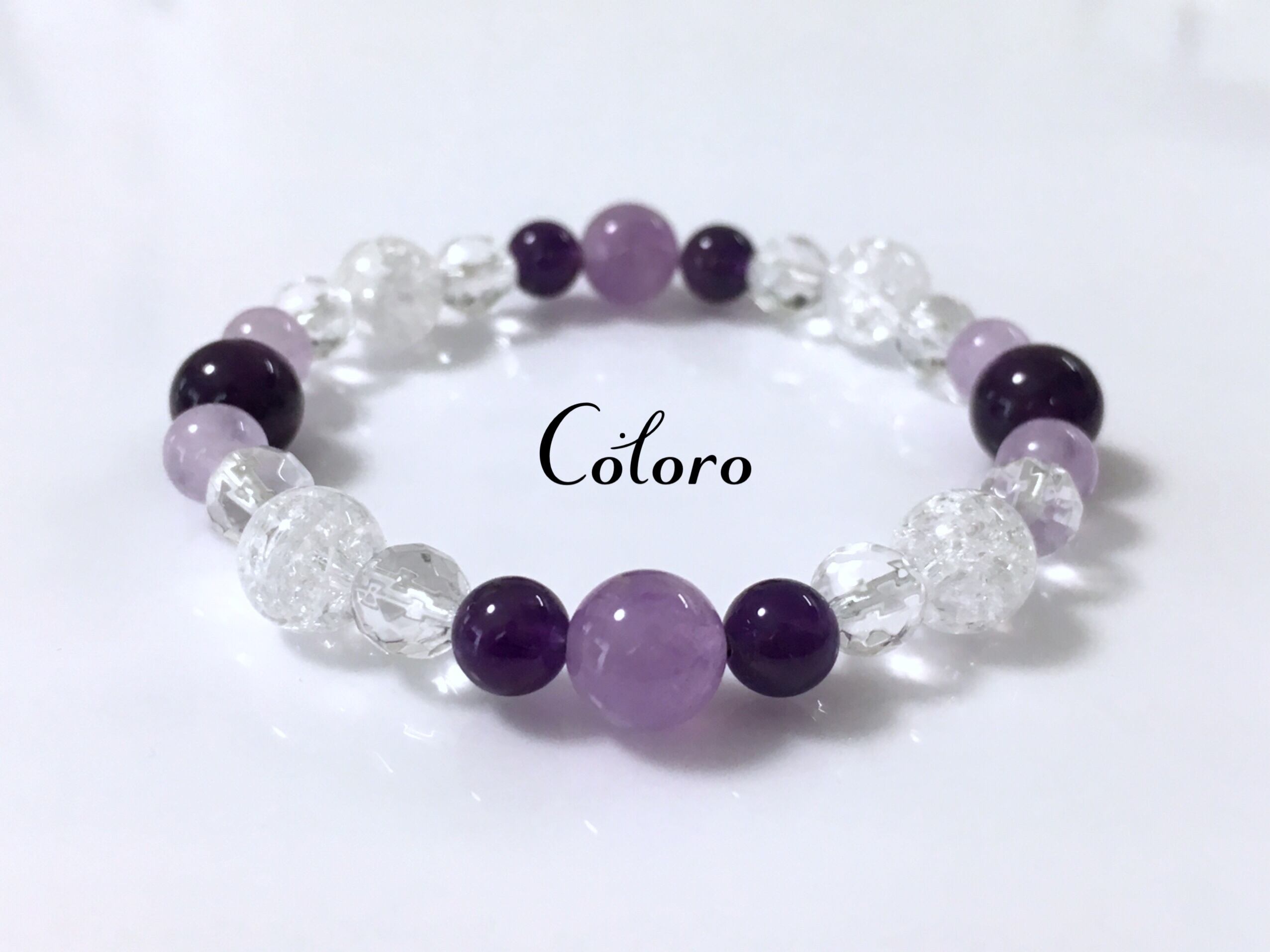 ☆ラベンダーアメジスト・アメジスト・クラッククリスタル・天然クォーツ(天然水晶)多面カット☆パワーストーン(天然石)☆ハンドメイド☆ブレスレット☆