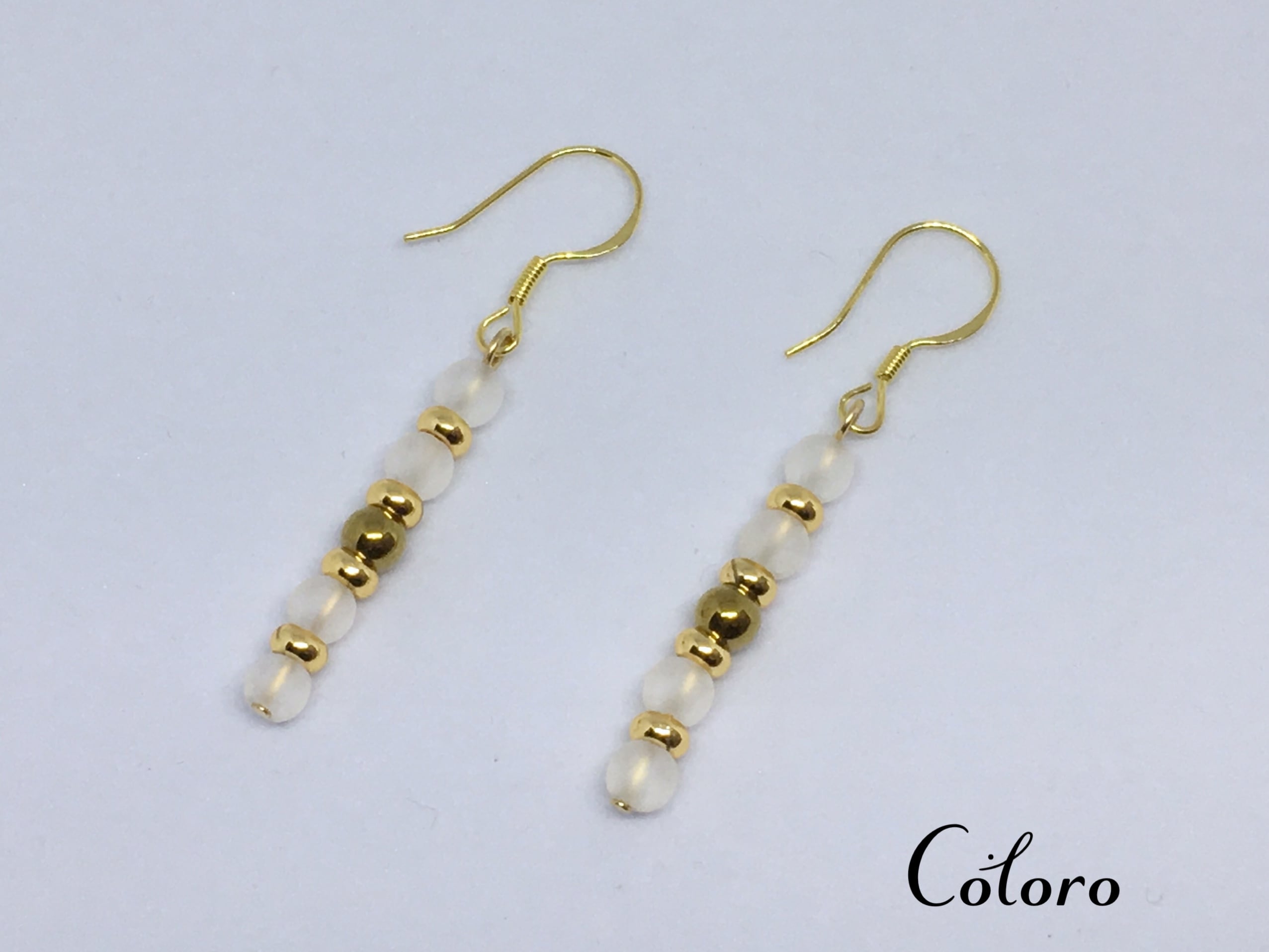 ☆揺れるピアス☆フロストクォーツ(クリスタル)・ヘマタイト☆ゴールドカラー☆18KGP☆ハンドメイド☆パワーストーン(天然石)誕生石☆イヤリング☆天然水晶☆