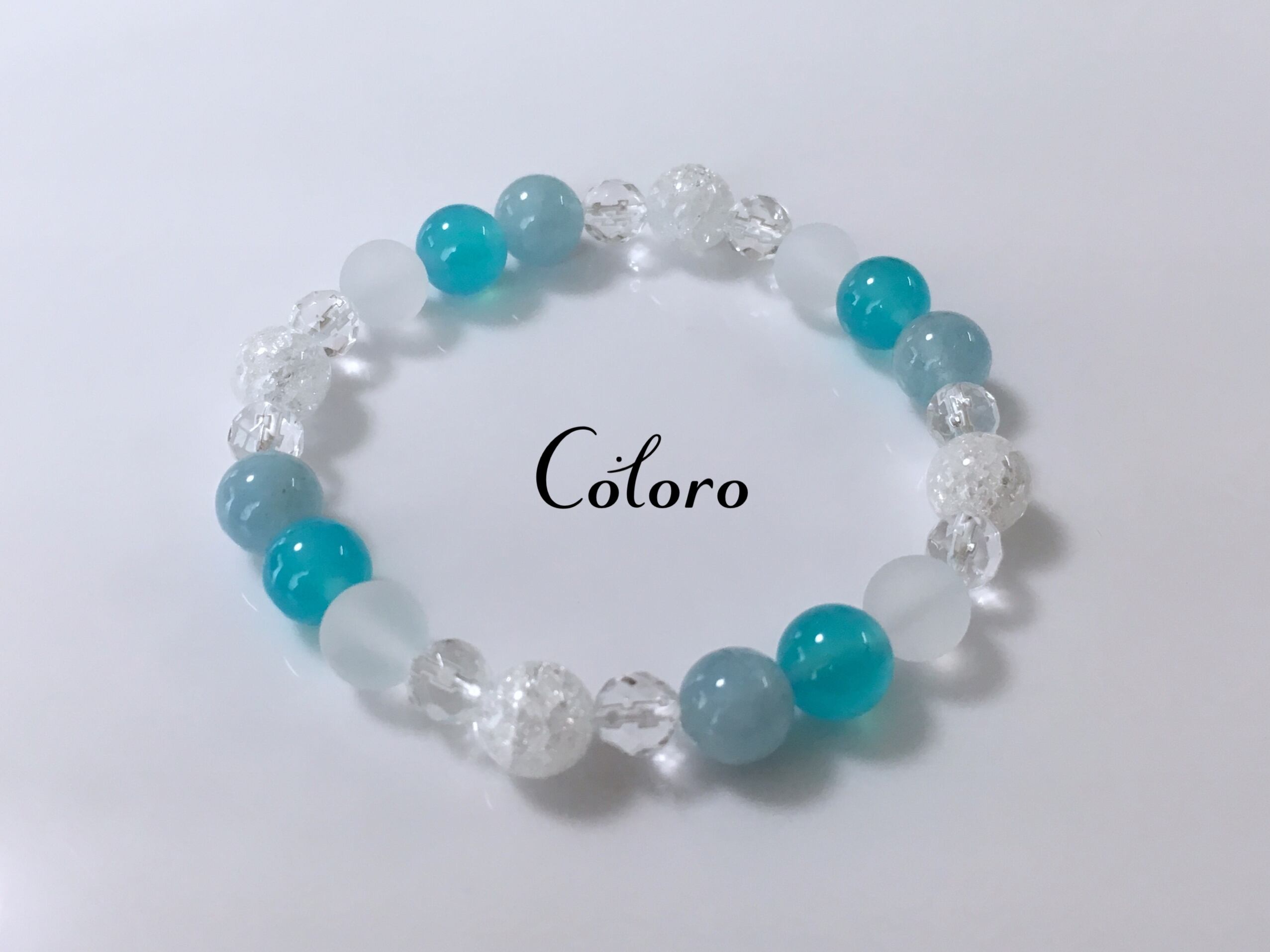 ☆アクアマリン・シーブルーカルセドニー・フロストクォーツ・クラッククリスタル☆パワーストーン(天然石)☆ハンドメイド☆ブレスレット☆