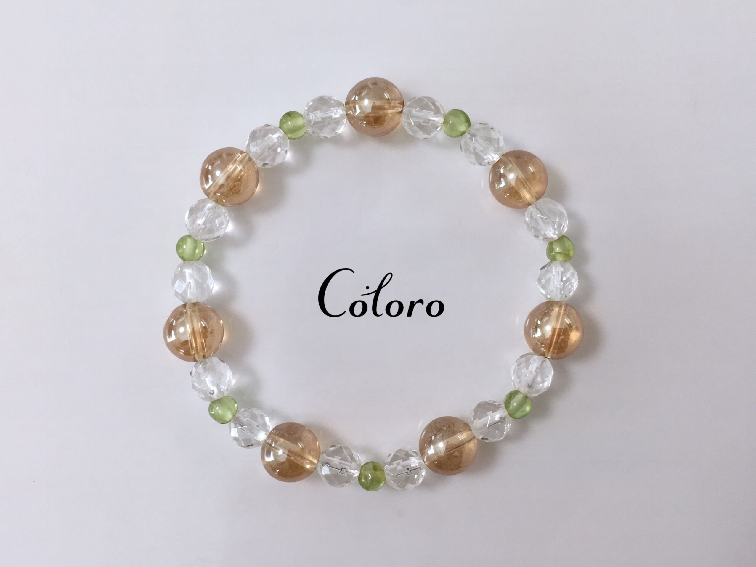 ☆シャンパンカラークォーツ・多面カットクリスタル(クォーツ)・ペリドット☆パワーストーン(天然石)☆ハンドメイド☆ブレスレット☆