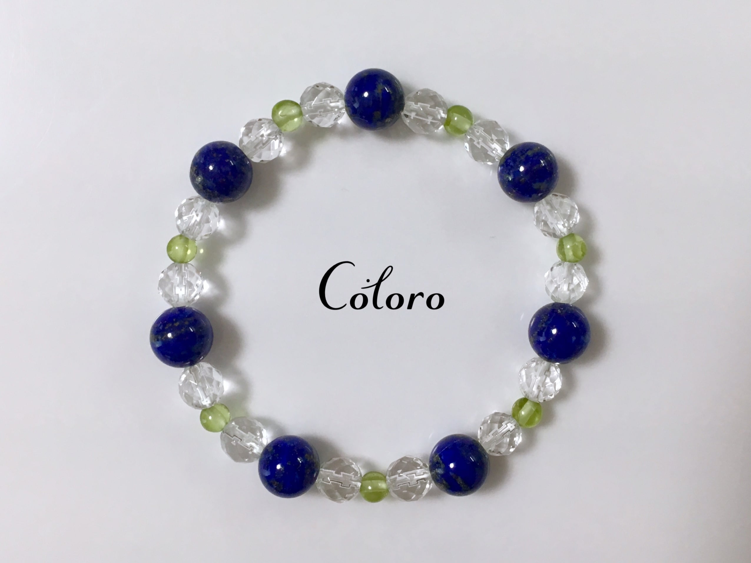 ☆ラピスラズリ・多面カットクリスタル(クォーツ)・ペリドット☆パワーストーン(天然石)☆ハンドメイド☆ブレスレット☆