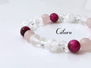 ☆ピンクタイガーアイ・ローズクォーツ・フロストクォーツ・クラッククリスタル☆パワーストーン(天然石)☆ハンドメイド☆ブレスレット☆