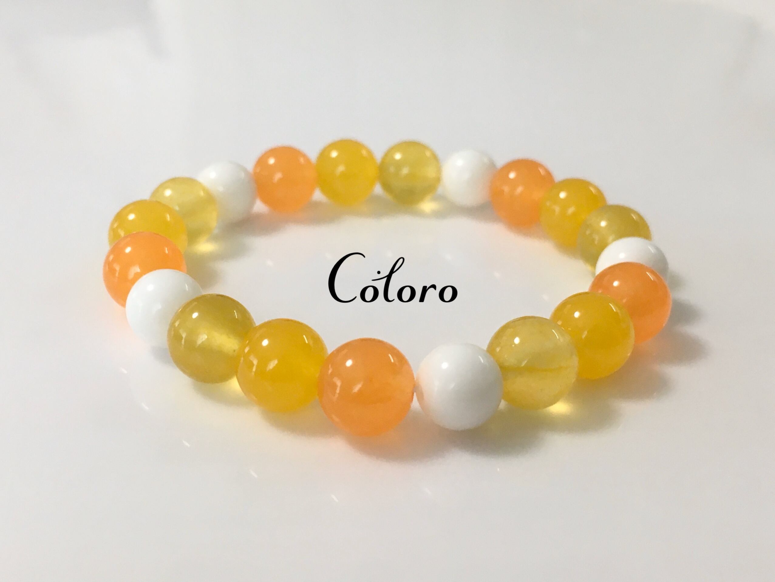 ☆雷の呼吸・善逸モチーフ☆オレンジジェード・イエローアゲート・イエローカルセドニー・ホワイトオニキス☆パワーストーン(天然石)☆ハンドメイド☆ブレスレット☆