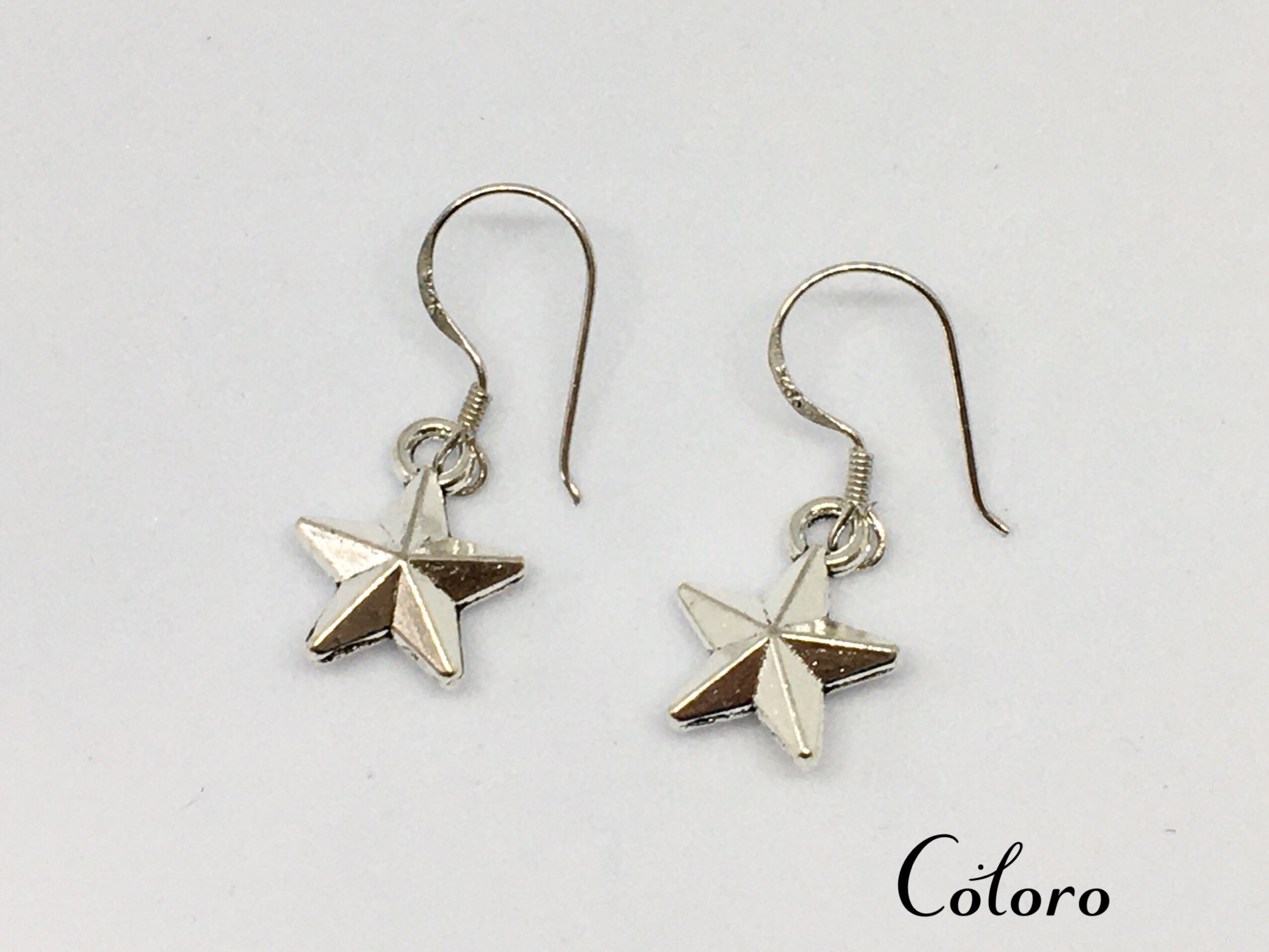 ☆シルバーカラーのスター(立体多面星)が揺れるピアス☆銀古美・ロジウムカラー☆Silver925☆ハンドメイド☆イヤリング☆