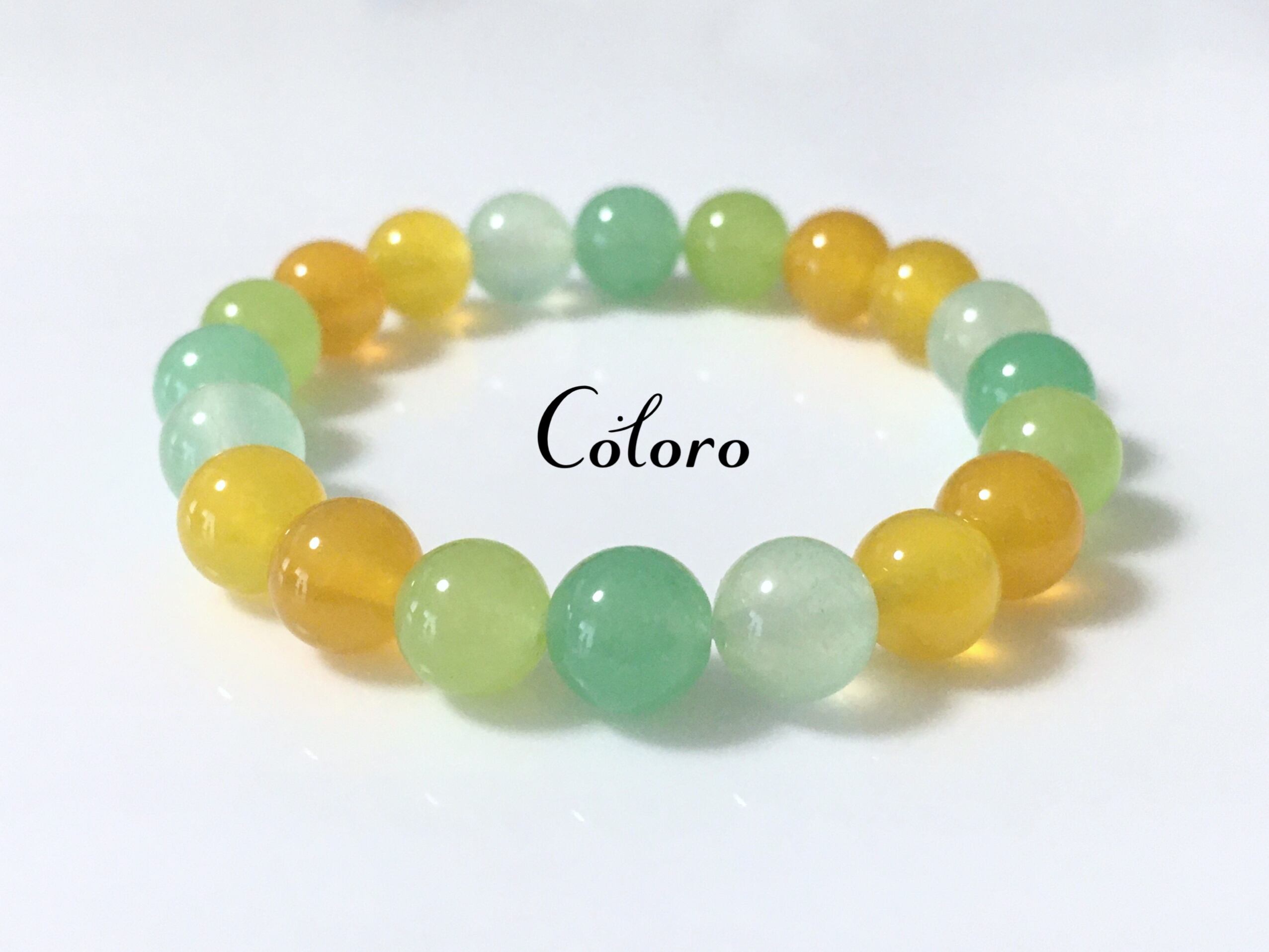 ☆グリーンジェイド・イエローカルセドニー☆パワーストーン(天然石)☆ハンドメイド☆ブレスレット☆グラデーション☆バナナ☆