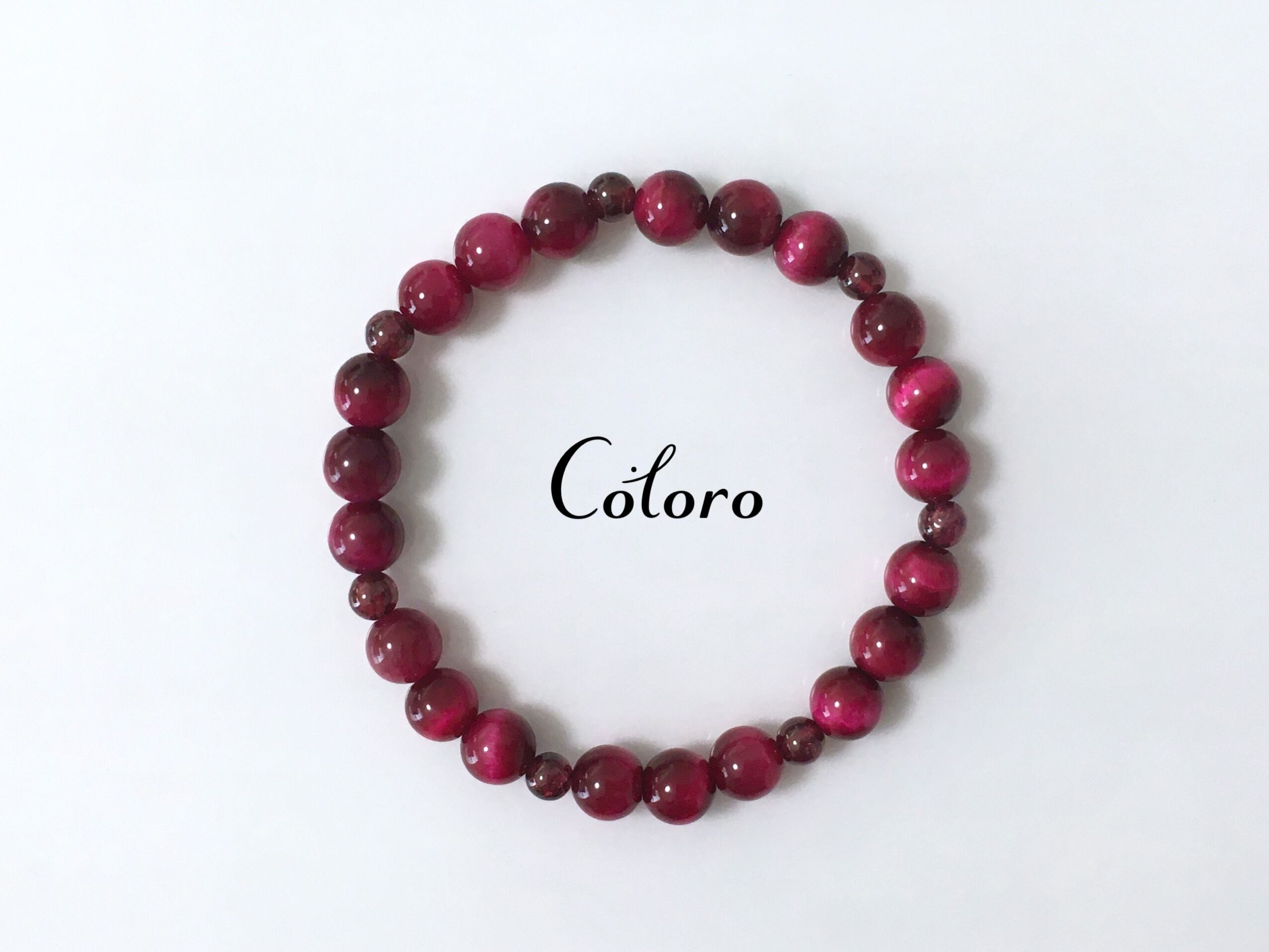 ☆6mm天然石のスタイリッシュなブレスレット☆ピンクカラータイガーアイ・ガーネット☆パワーストーン☆ハンドメイド☆4mm天然石9種類の中から1種類を選択出来ます☆