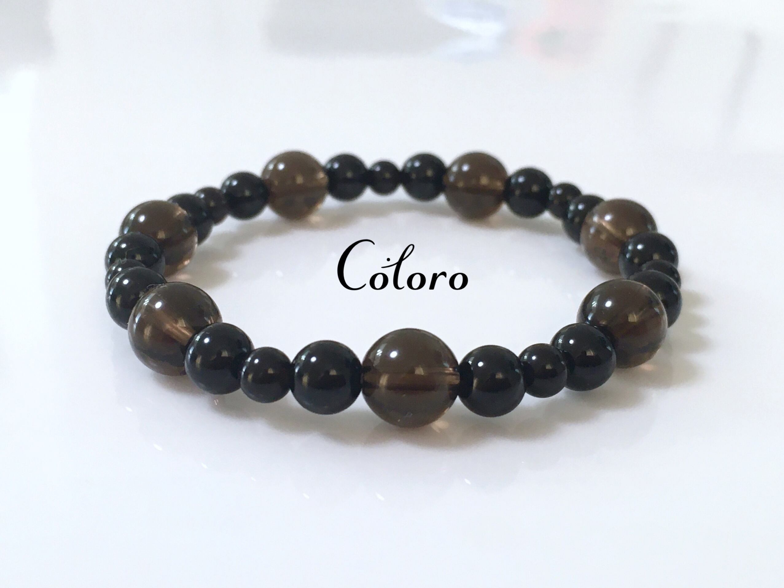 ☆精神安定・不安解消・厄払い☆スモーキークォーツ・モリオン(黒水晶)☆パワーストーン(天然石)☆ハンドメイド☆ブレスレット☆