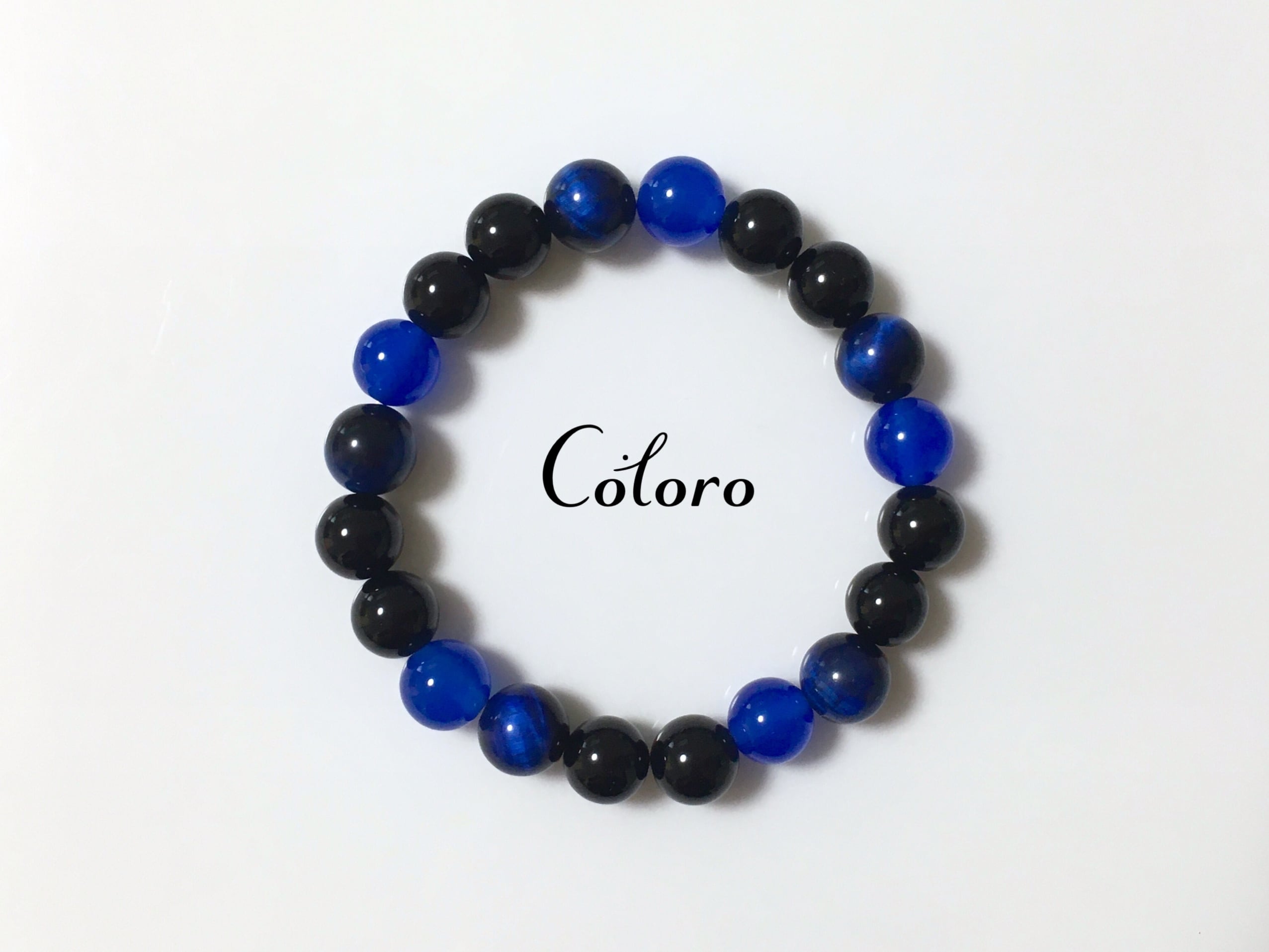 ☆仕事運☆ブルータイガーアイ・ブルーアゲート(瑪瑙)・オニキス☆パワーストーン(天然石)☆ハンドメイド☆ブレスレット☆