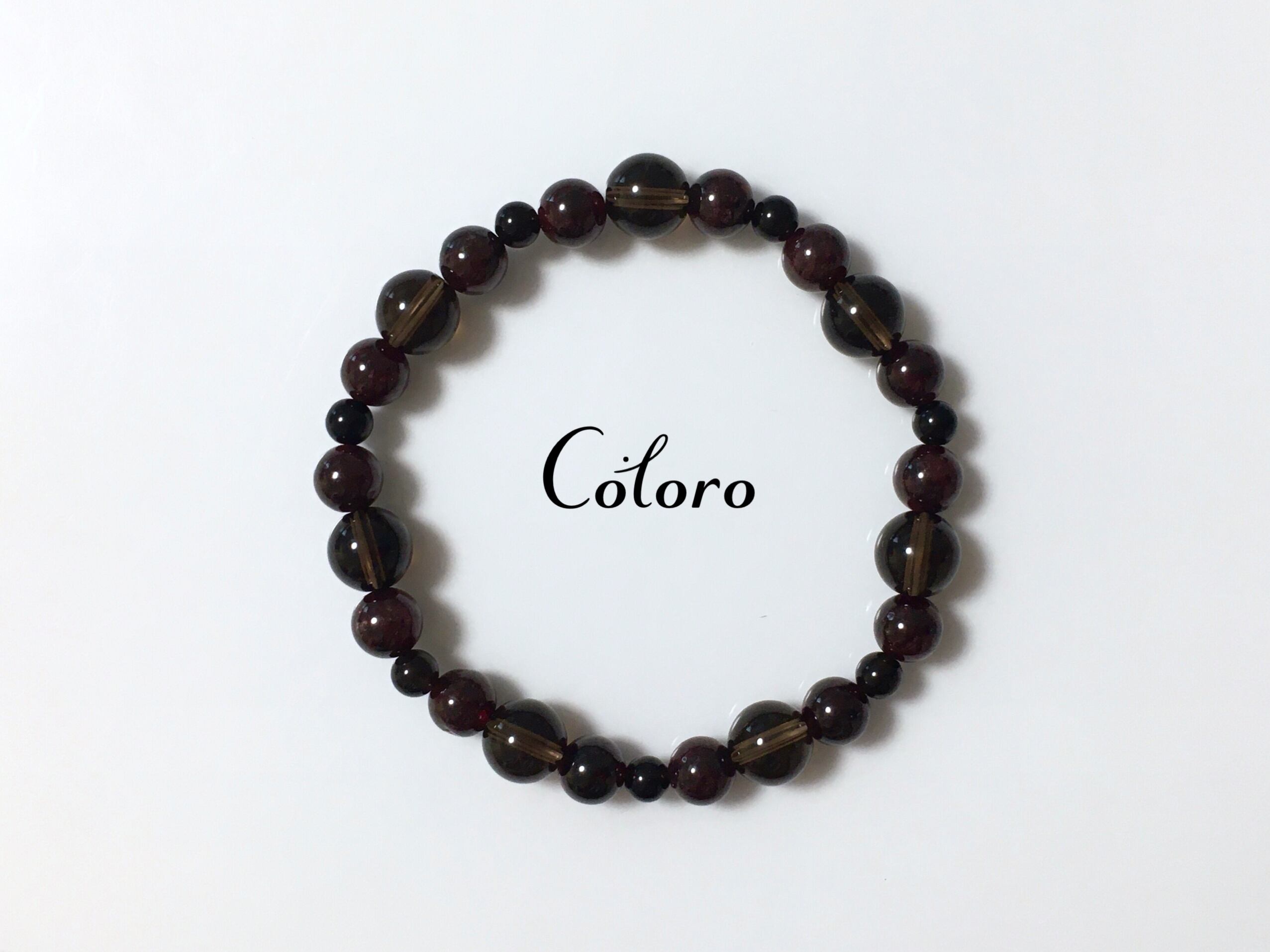 (検索) #ブレスレット #数珠 #天然石 #パワーストーン #ハンドメイド #グラデーション #キラキラ #綺麗 #大人コーデ #大人女子 #ママコーデ #小悪魔 #美魔女 #フェミニン #送料無料 #誕生石 #1月 #紅 #深紅 #星空 #血 #鬱 #信頼 #愛 #厄除け #厄払い #魔除け #邪気払い #黒水晶 #モリオン #ガーネット #スモーキークォーツ