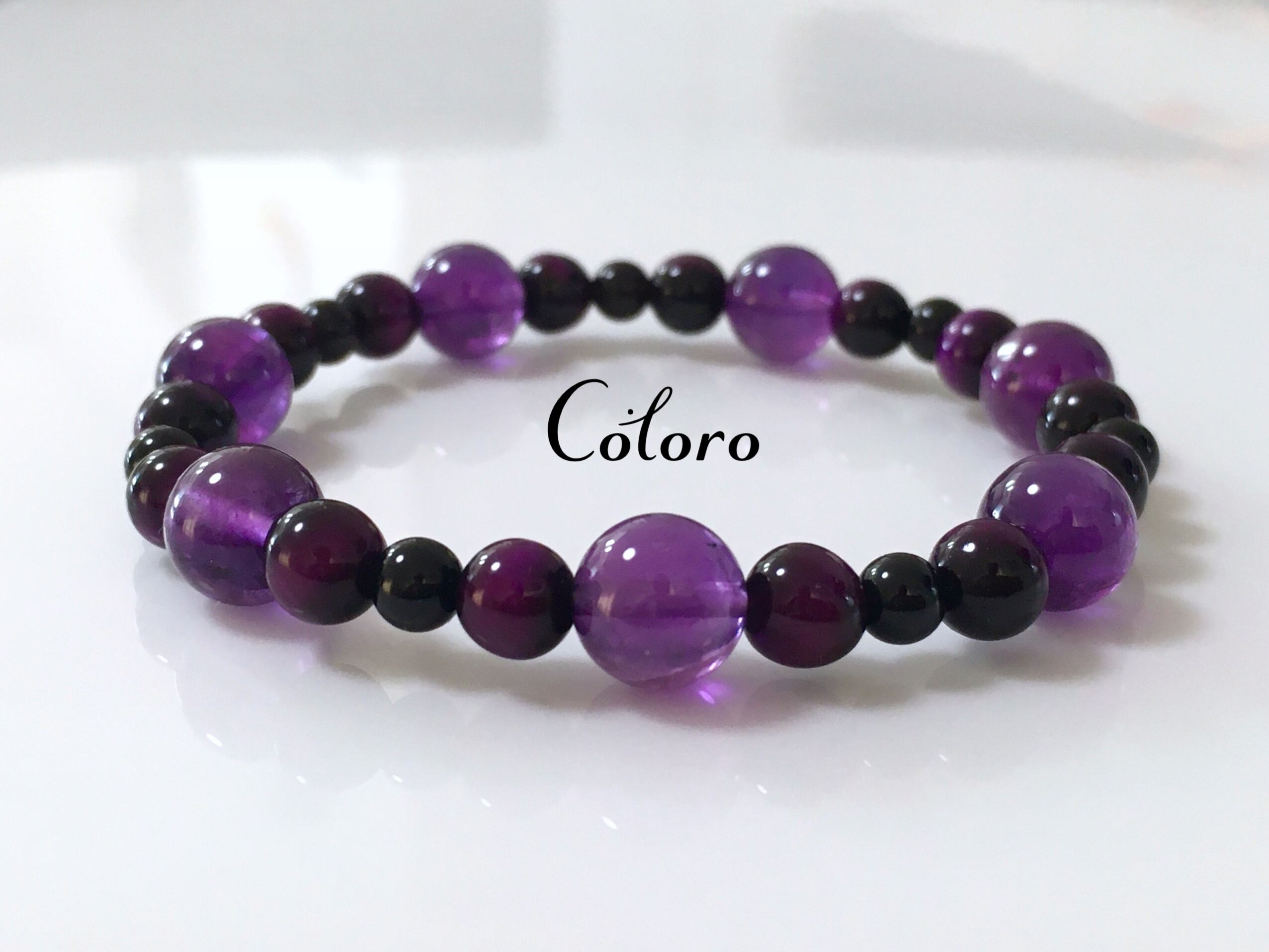 ☆仕事運・厄除け☆アメジスト・パープルカラータイガーアイ・モリオン(黒水晶)☆パワーストーン(天然石)☆ハンドメイド☆ブレスレット☆4mm天然石9種類の中から1種類を選択出来ます☆