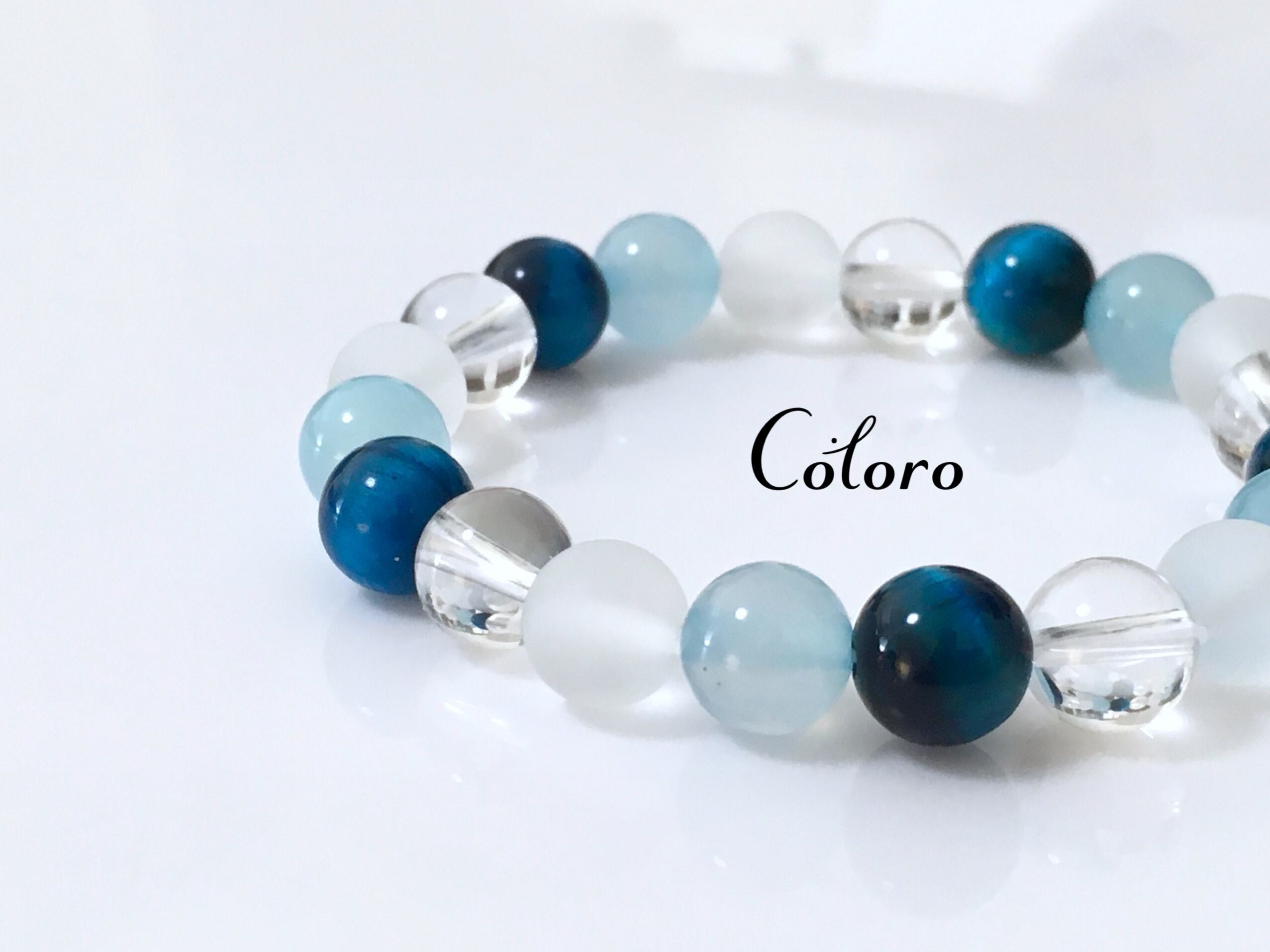 ☆ブルーグリーンタイガーアイ・シーブルーカルセドニー・フロストクォーツ・水晶☆パワーストーン(天然石)☆ハンドメイド☆ブレスレット☆