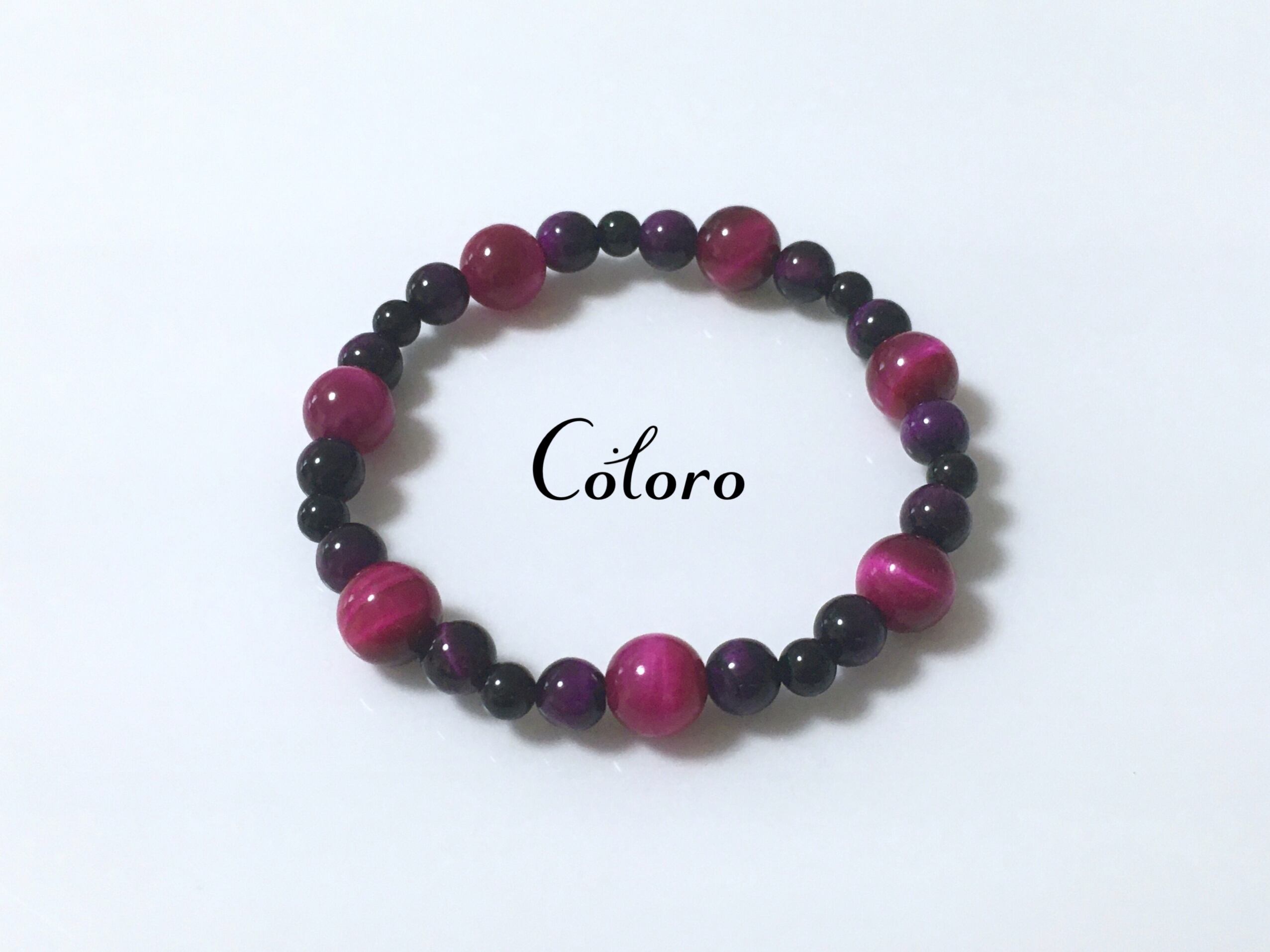 ☆仕事運・厄除け☆ピンクカラータイガーアイ・パープルカラータイガーアイ・モリオン(黒水晶)☆パワーストーン(天然石)☆ハンドメイド☆ブレスレット☆4mm天然石9種類の中から1種類を選択出来ます☆