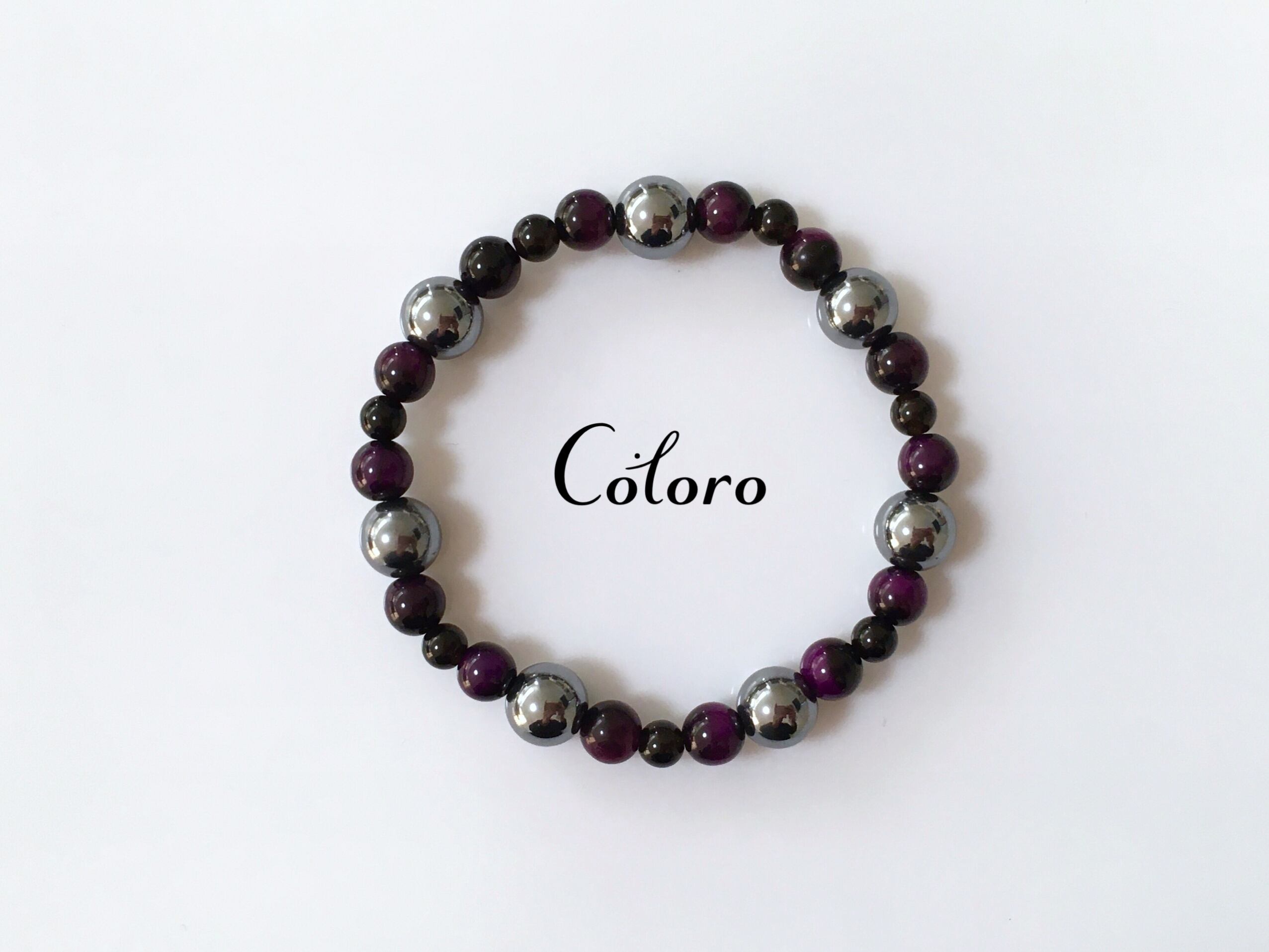 ☆健康石☆テラヘルツ波☆高純度テラヘルツ鉱石・パープルカラータイガーアイ・モリオン(黒水晶)☆パワーストーン(天然石)☆ハンドメイド☆ブレスレット☆4mm天然石9種類の中から1種類を選択出来ます☆