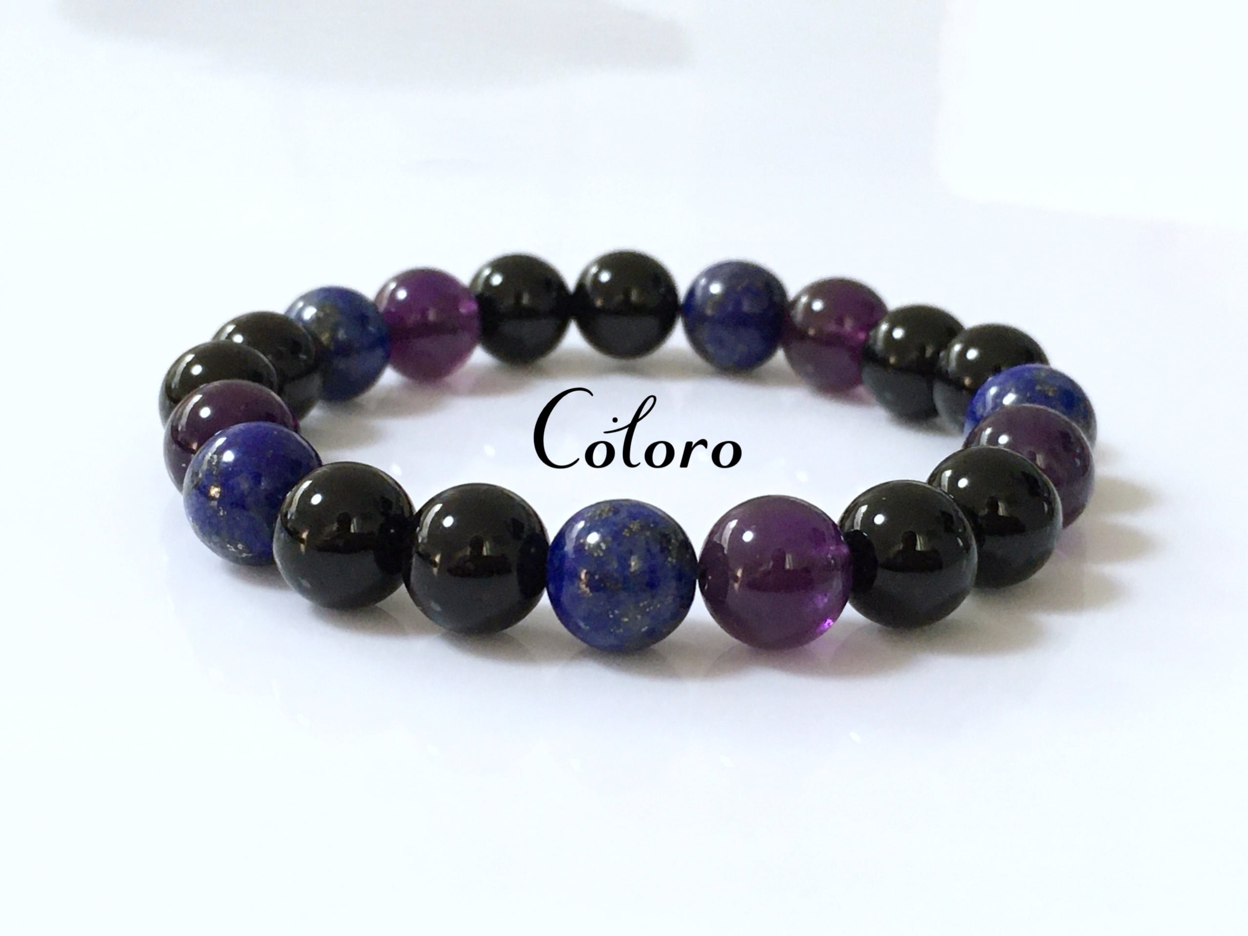 ☆邪気祓い☆誕生石☆ラピスラズリ・アメジスト(ダークカラー)・オニキス☆ハンドメイド☆ブレスレット☆