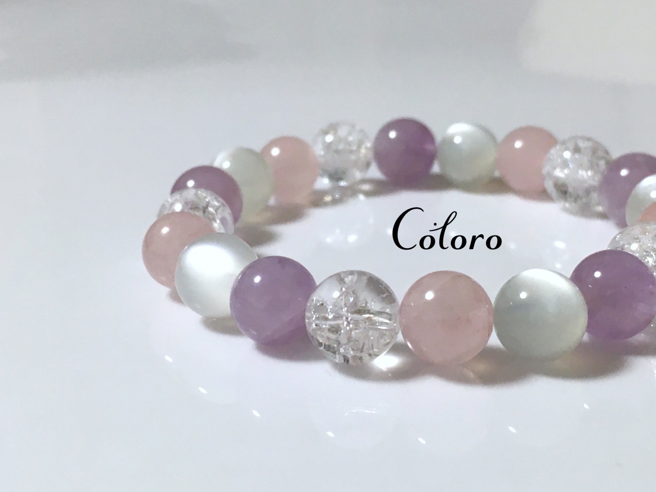 ☆パステルカラー☆ムーンストーン・ラベンダーアメジスト・ローズクォーツ・クラッククリスタル☆誕生石☆天然石☆ハンドメイド☆ブレスレット☆