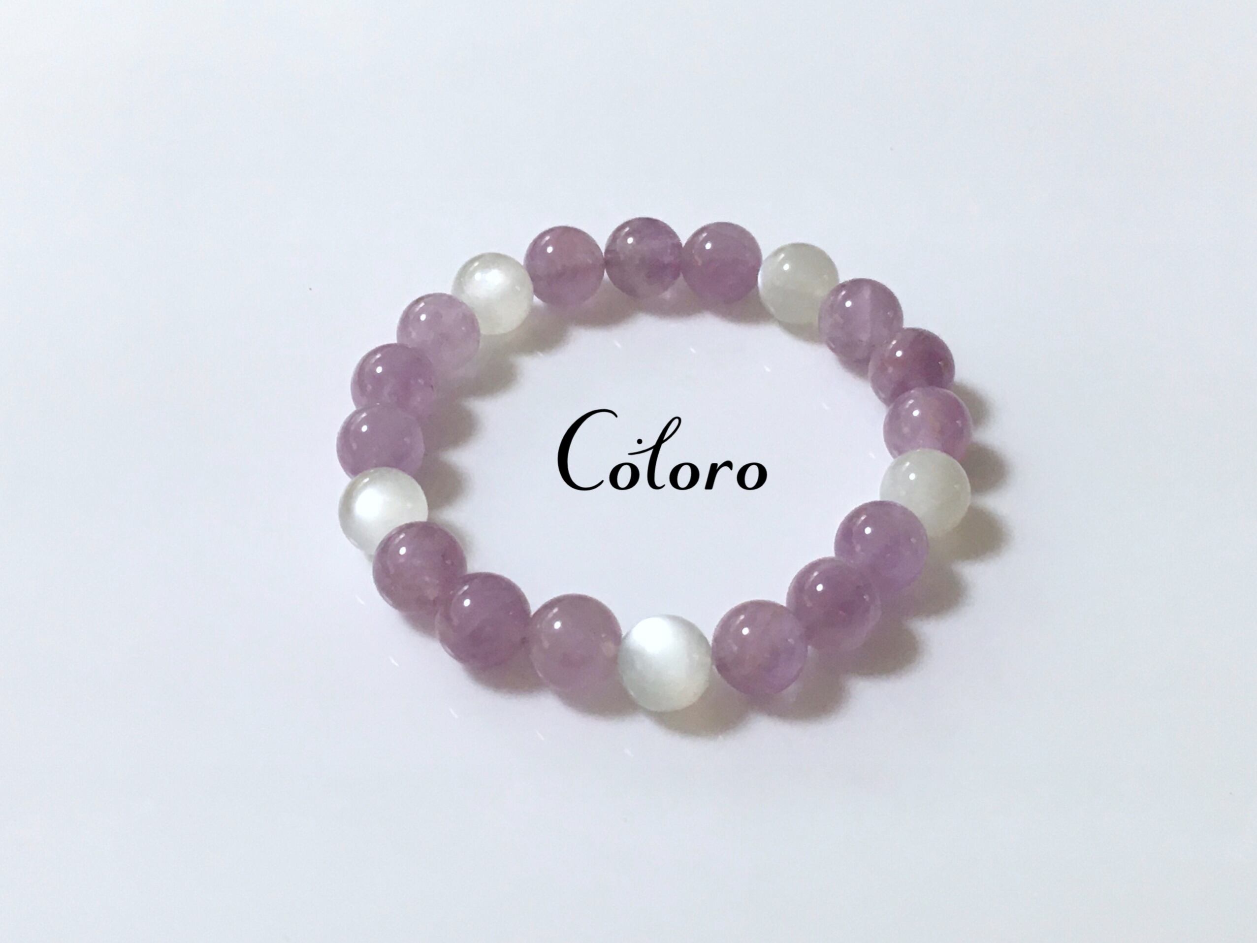 【送料無料】☆パステルカラー☆ムーンストーン・ラベンダーアメジスト☆誕生石☆天然石☆ハンドメイド☆ブレスレット☆