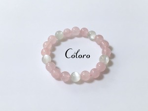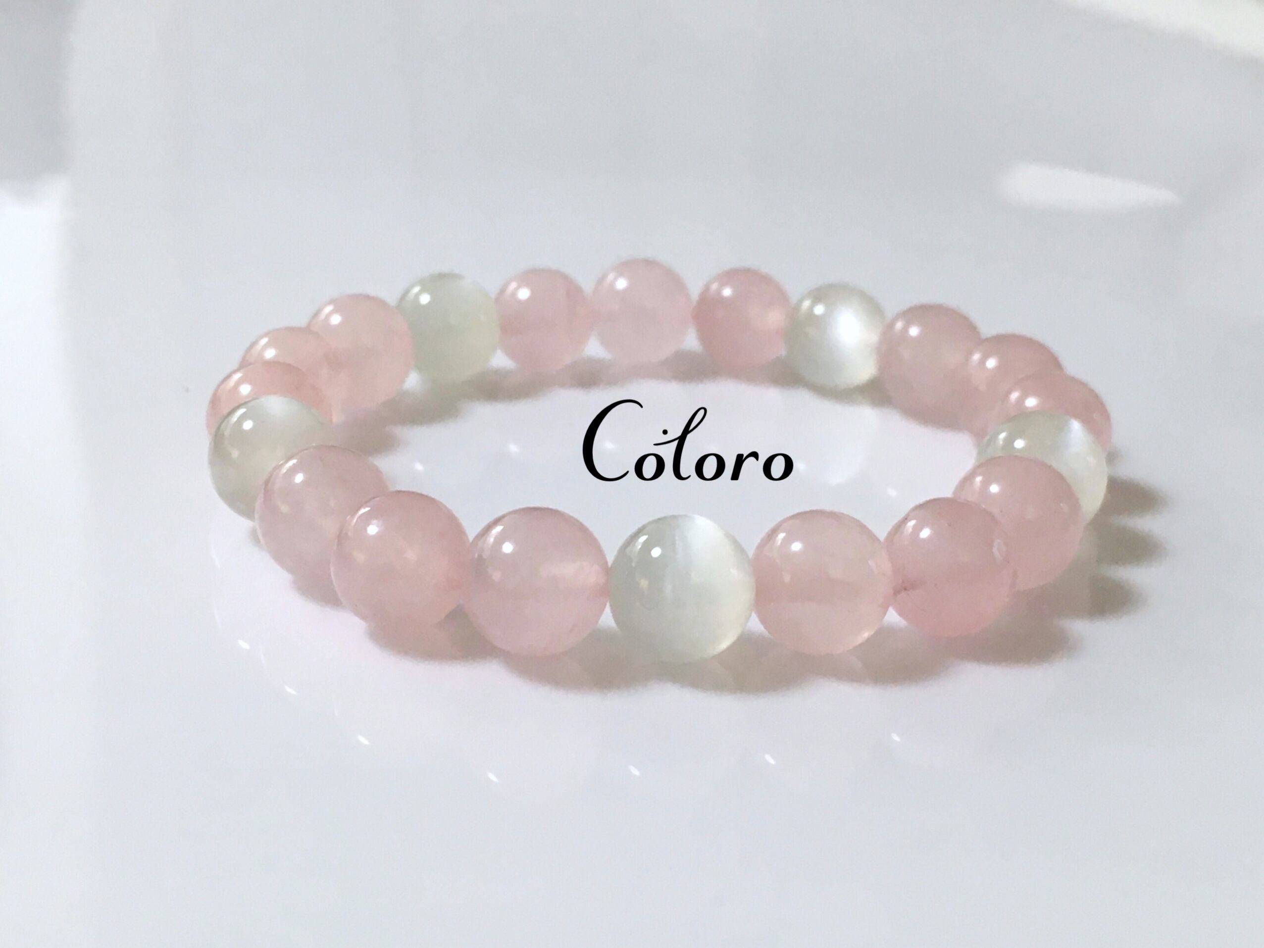 ☆パステルカラー☆ムーンストーン・ローズクォーツ☆誕生石☆天然石☆ハンドメイド☆ブレスレット☆ピンク☆