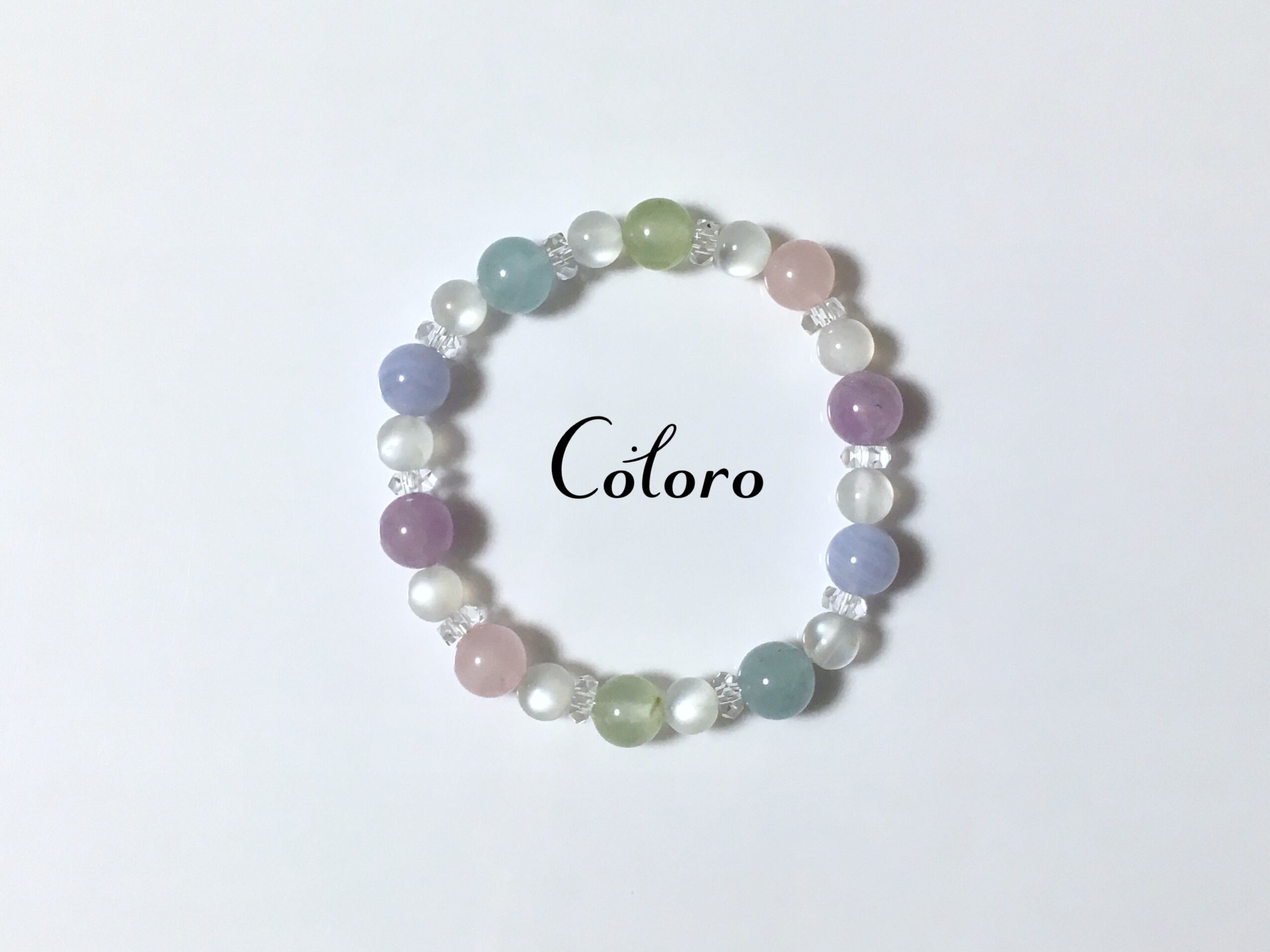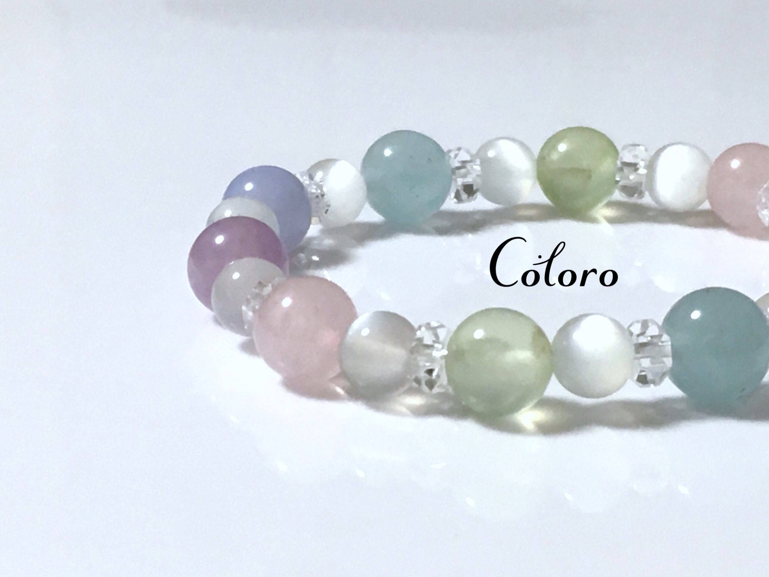 【送料無料】☆アクアマリン・ホワイトムーンストーン・ブルーレースアゲート・ローズクォーツ・ラベンダーアメジスト・プレナイト☆誕生石☆天然石☆ハンドメイドブレスレット☆パステルカラー☆ペールカラー☆