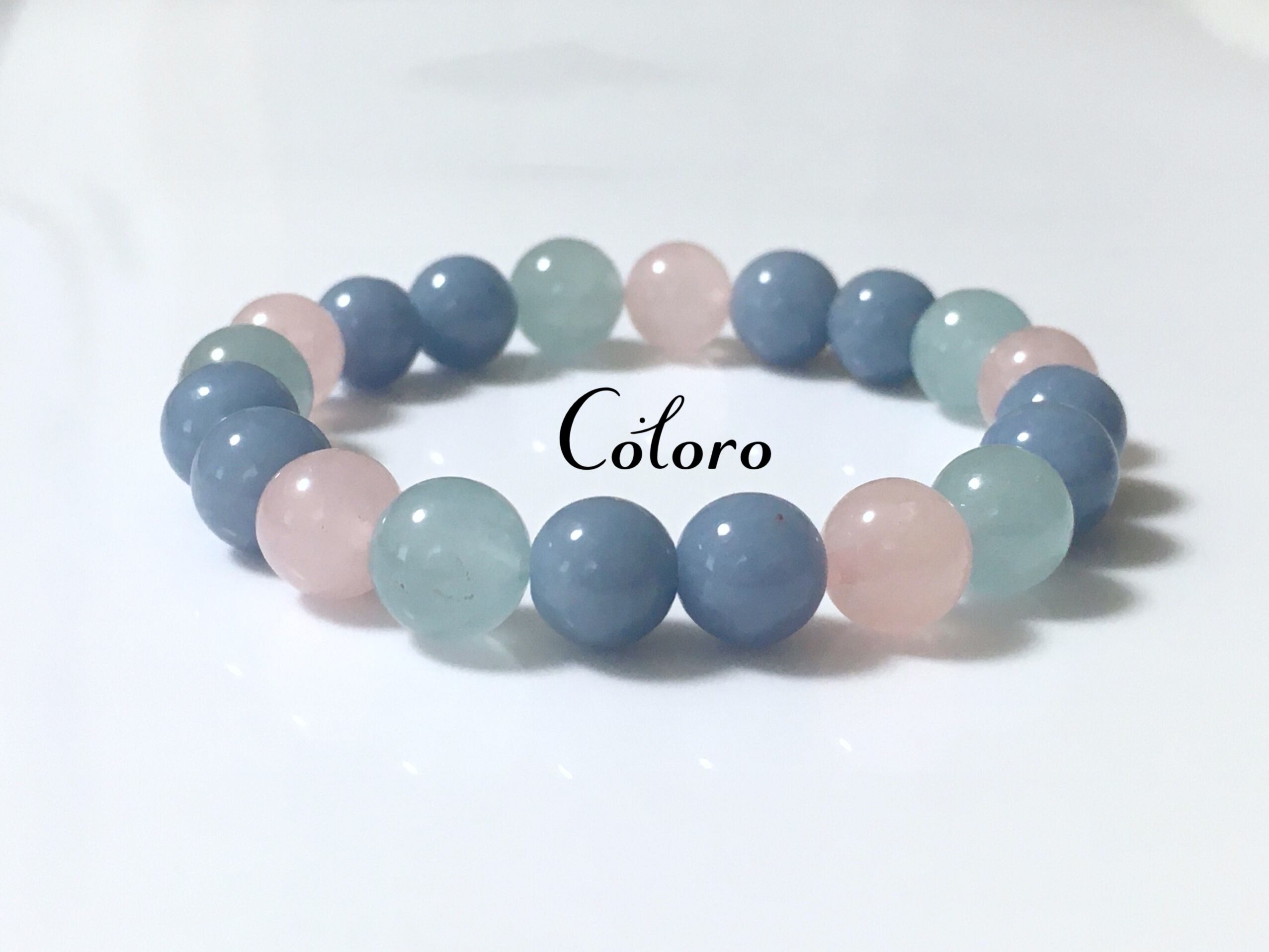 ☆パステルカラー☆エンジェライト・ローズクォーツ・アクアマリン☆誕生石☆天然石☆ハンドメイド☆ブレスレット☆ペールカラー☆