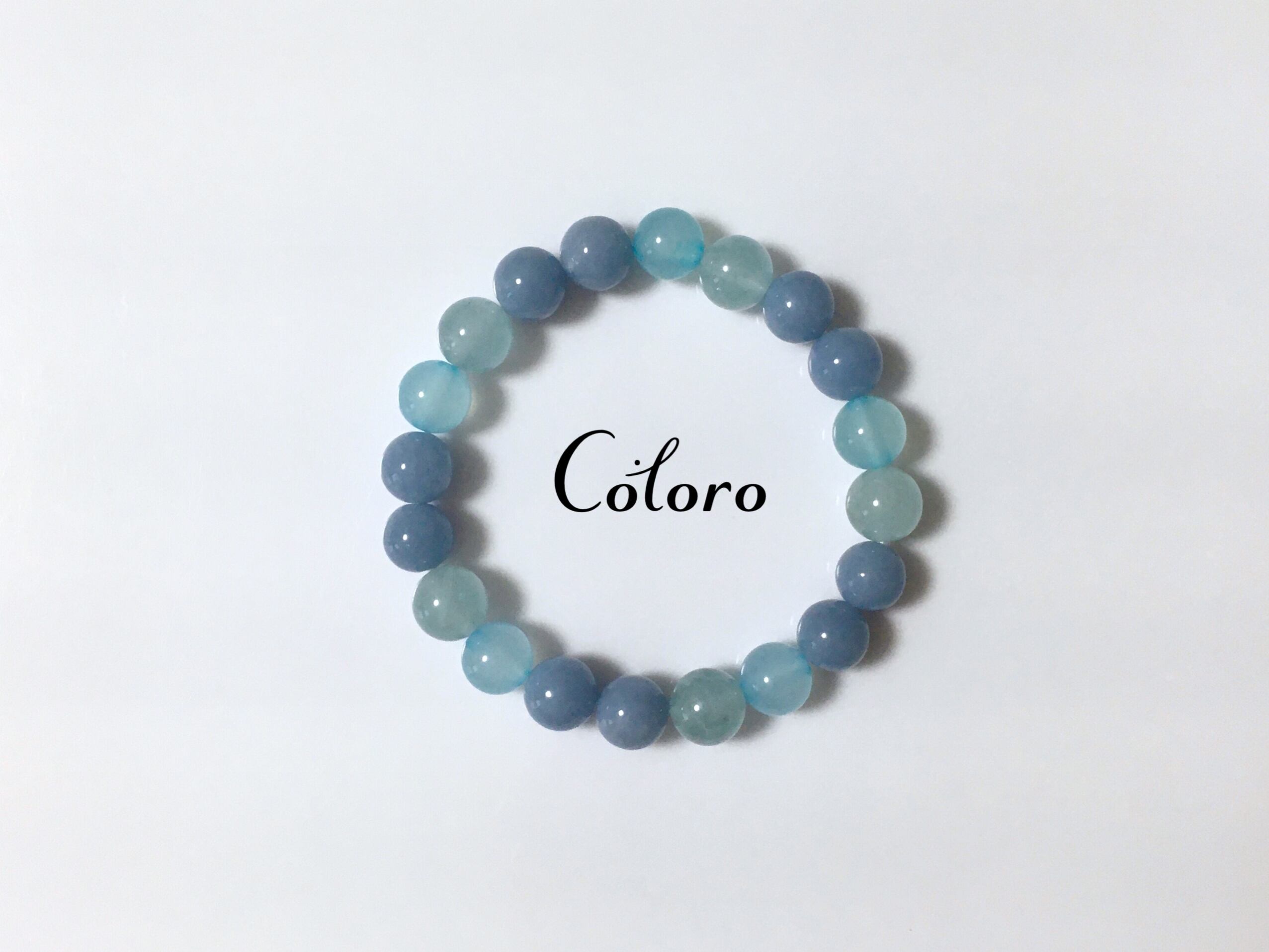 ☆パステルカラー☆エンジェライト・シーブルーカルセドニー・アクアマリン☆誕生石☆天然石☆ハンドメイド☆ブレスレット☆ペールカラー☆