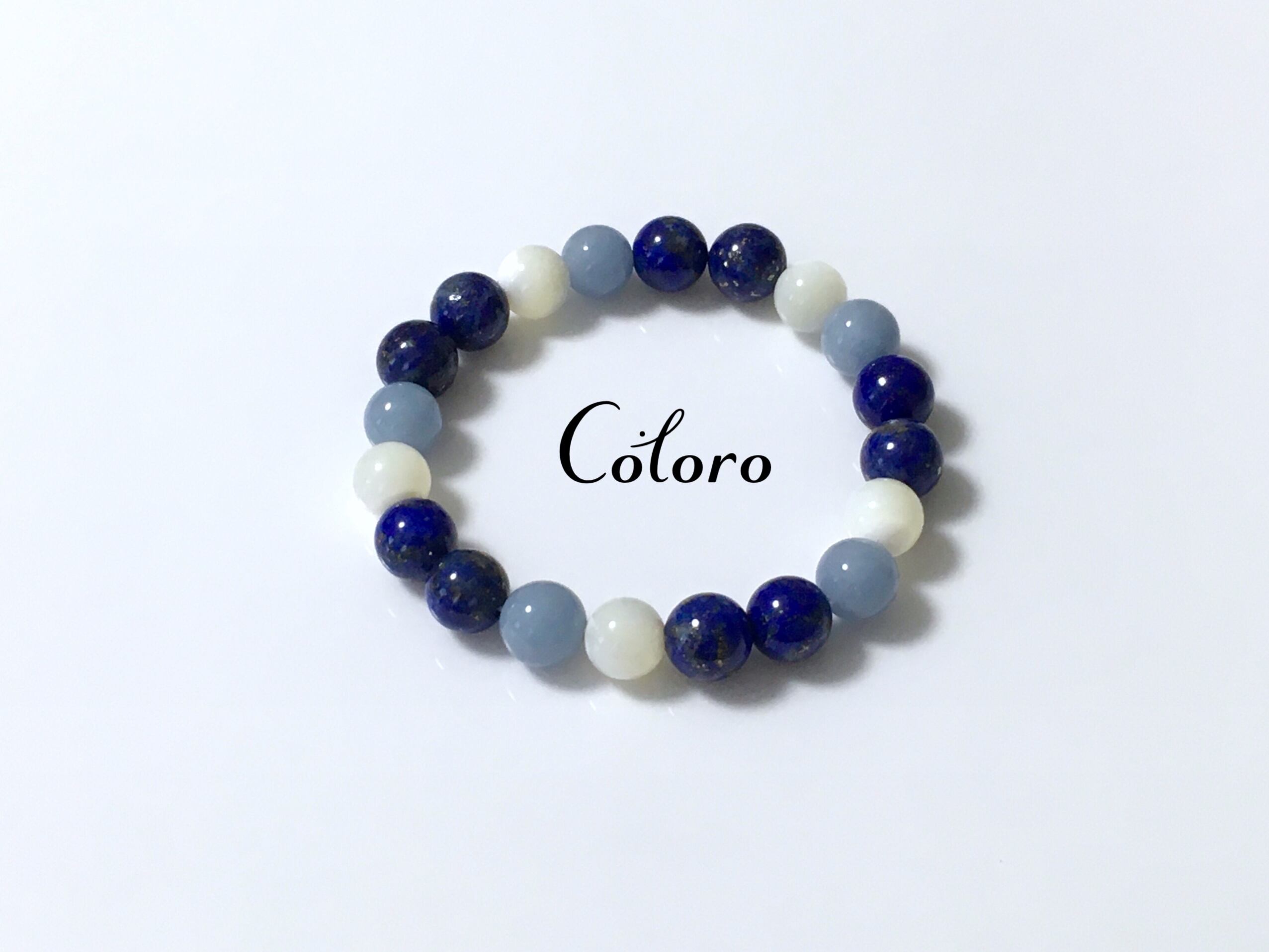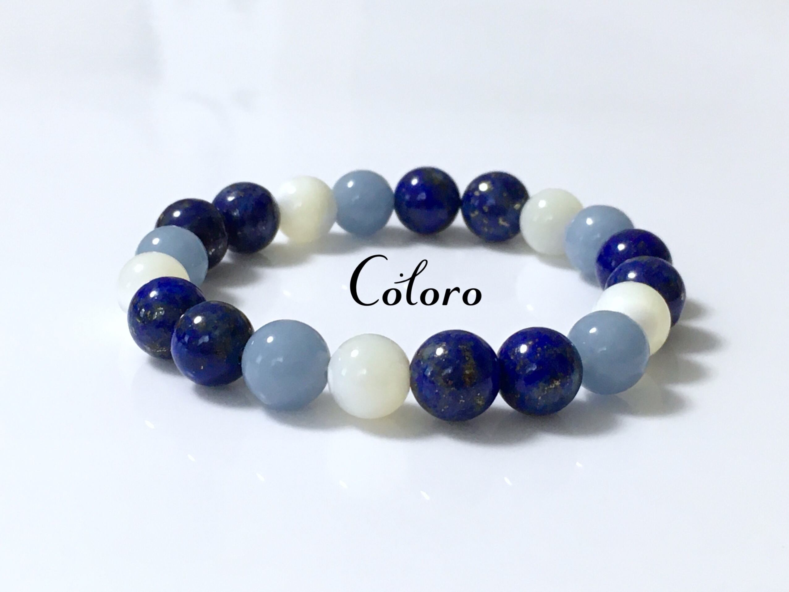 【送料無料】☆ラピスラズリ・エンジェライト・マザーオブパール☆誕生石☆数珠☆天然石☆ハンドメイド☆ブレスレット☆