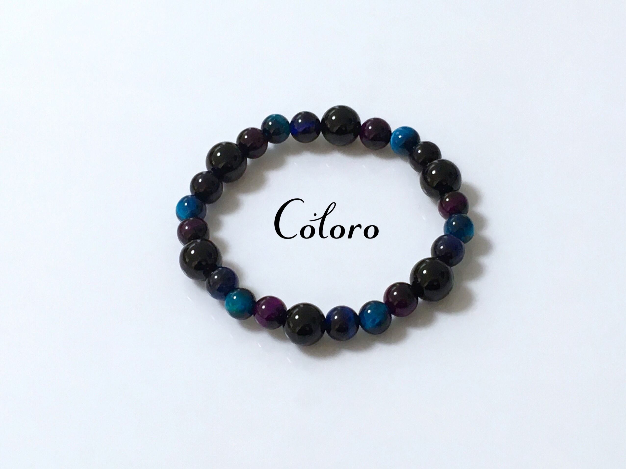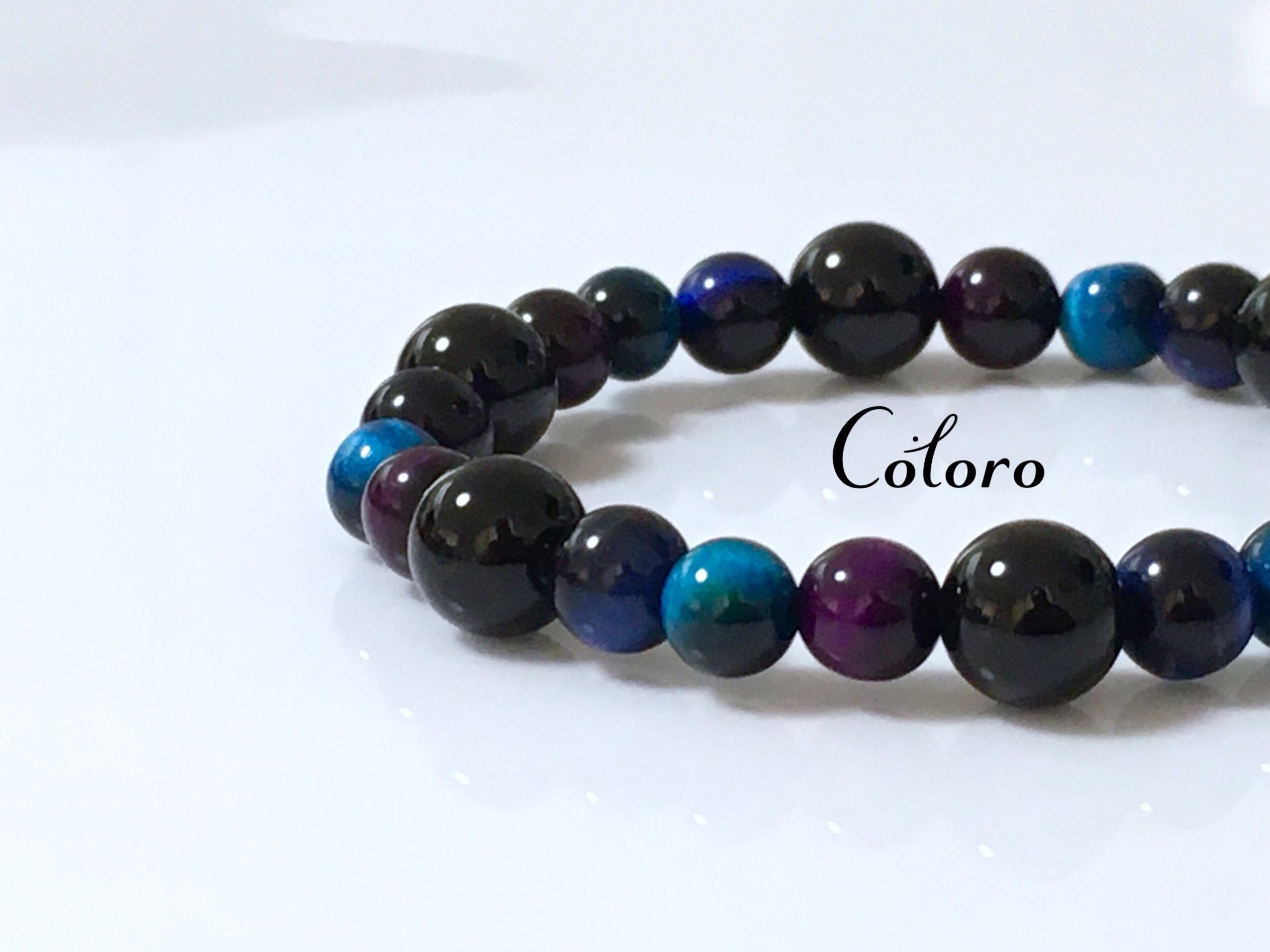 ☆モリオン(黒水晶)・ブルーグリーンカラータイガーアイ・パープルカラータイガーアイ・ブルーカラータイガーアイ☆誕生石☆天然石☆ハンドメイド☆ブレスレット☆